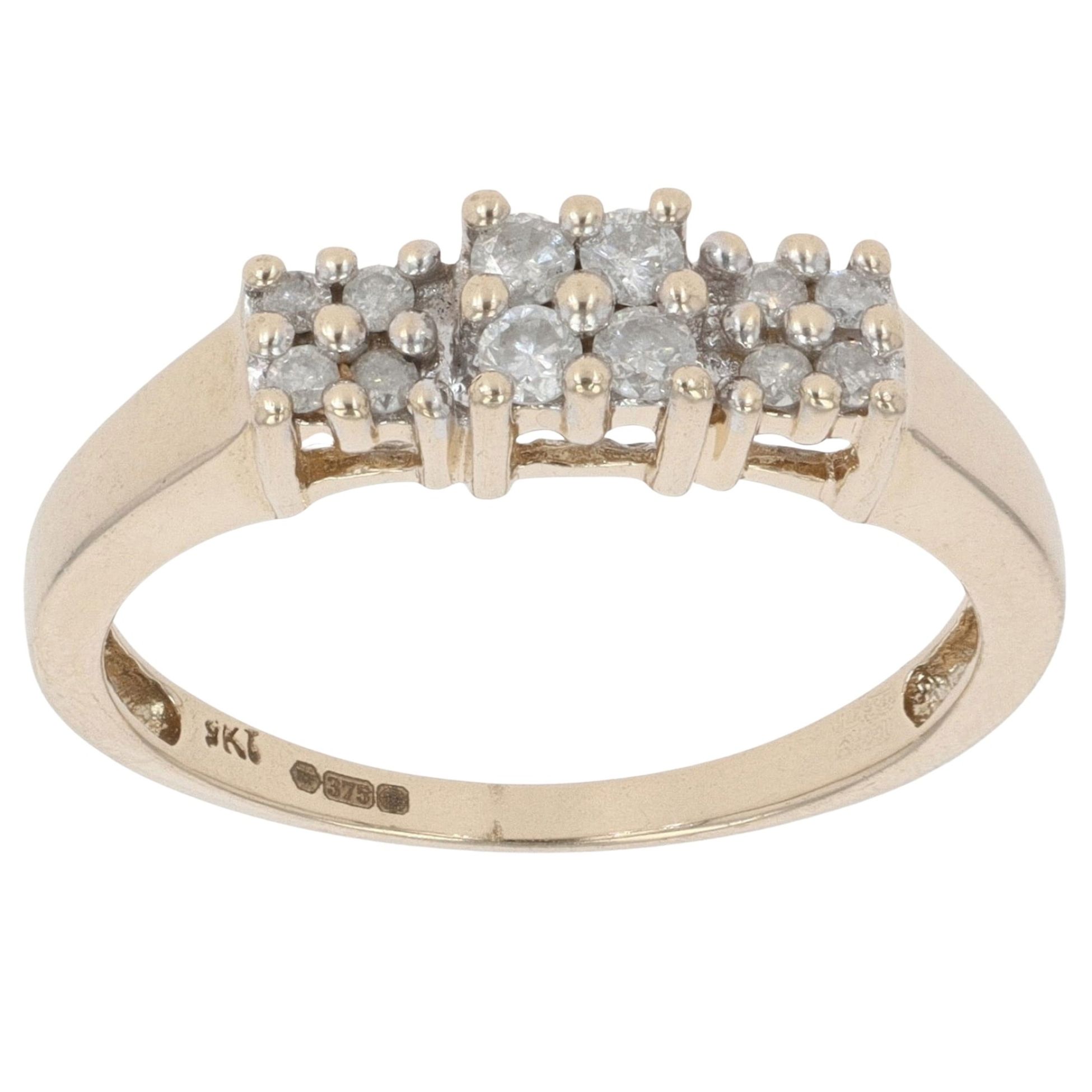 9ct Yellow Gold 0.20ct Diamond Triple Cluster Ring