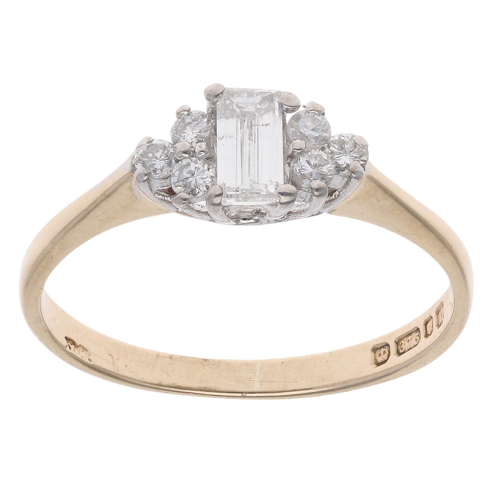 9ct Yellow Gold 0.25ct Baguette And Brilliant Cut Diamond Fancy Ring