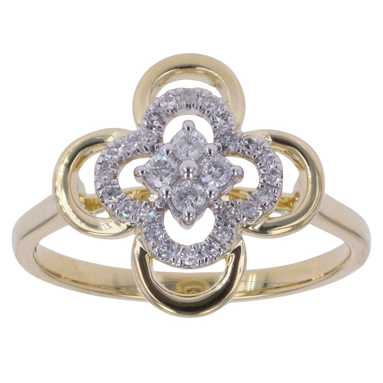 9ct Yellow Gold 0.25ct Brilliant Cut Diamond Floral Cluster Ring