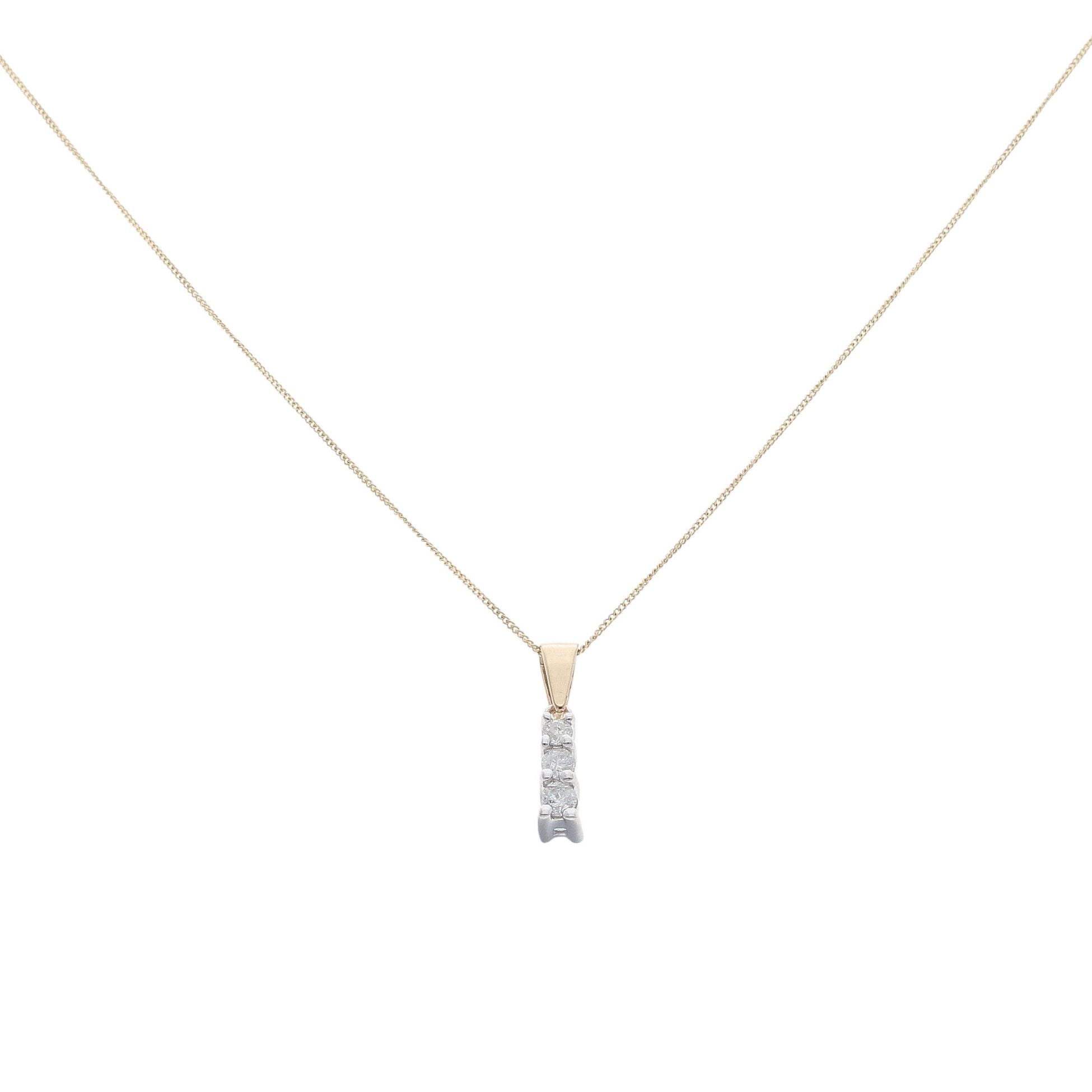 9ct Yellow Gold 0.25ct Brilliant Cut Diamond Trilogy Pendant And Chain 18"