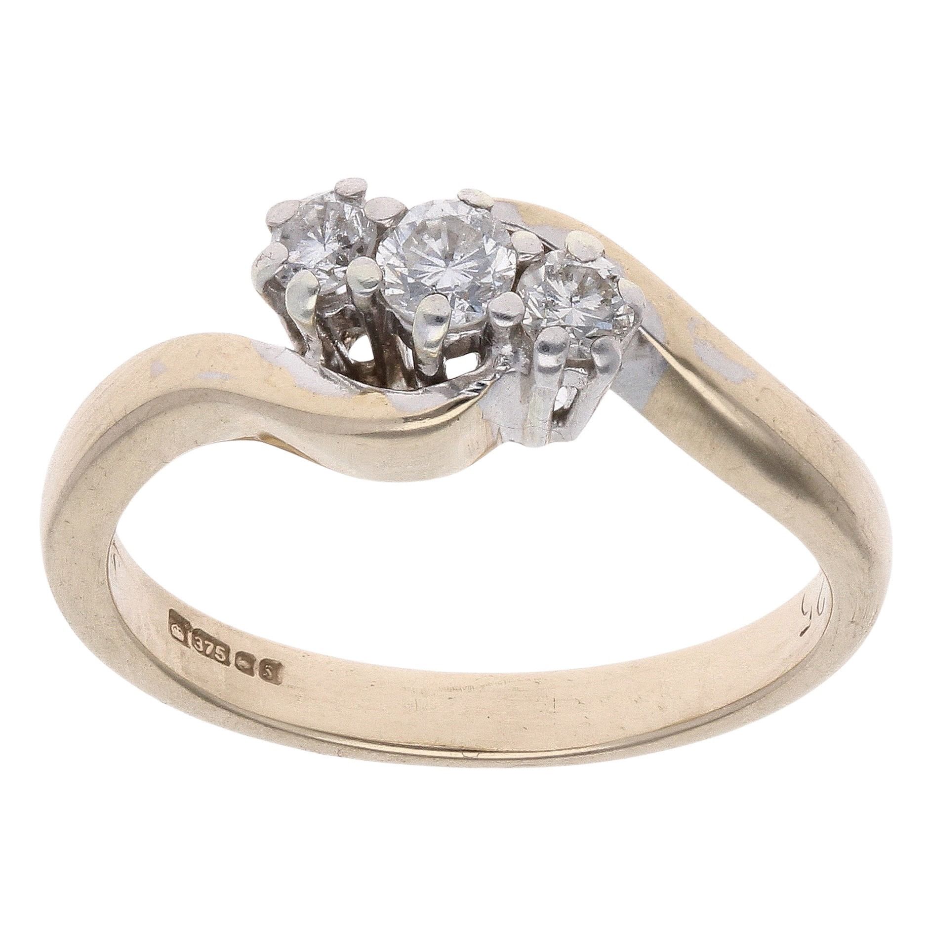 9ct Yellow Gold 0.25ct Brilliant Cut Diamond Trilogy Ring