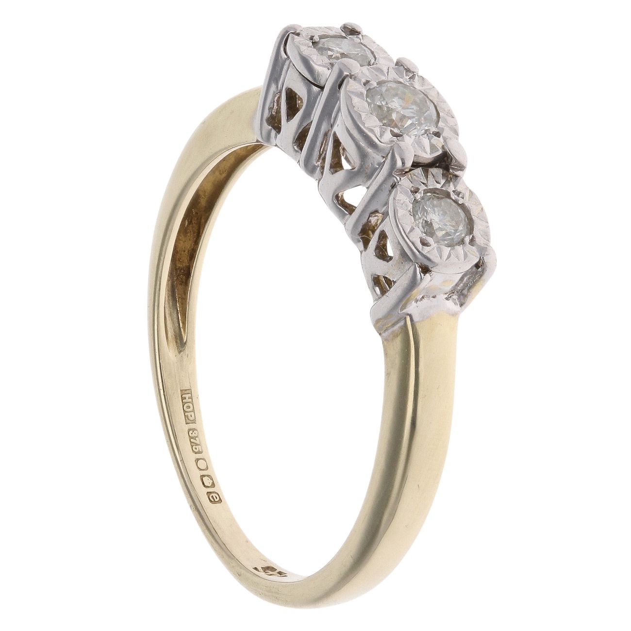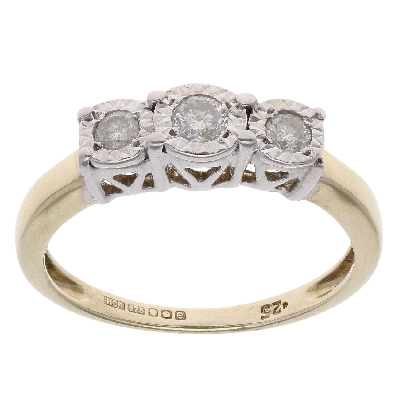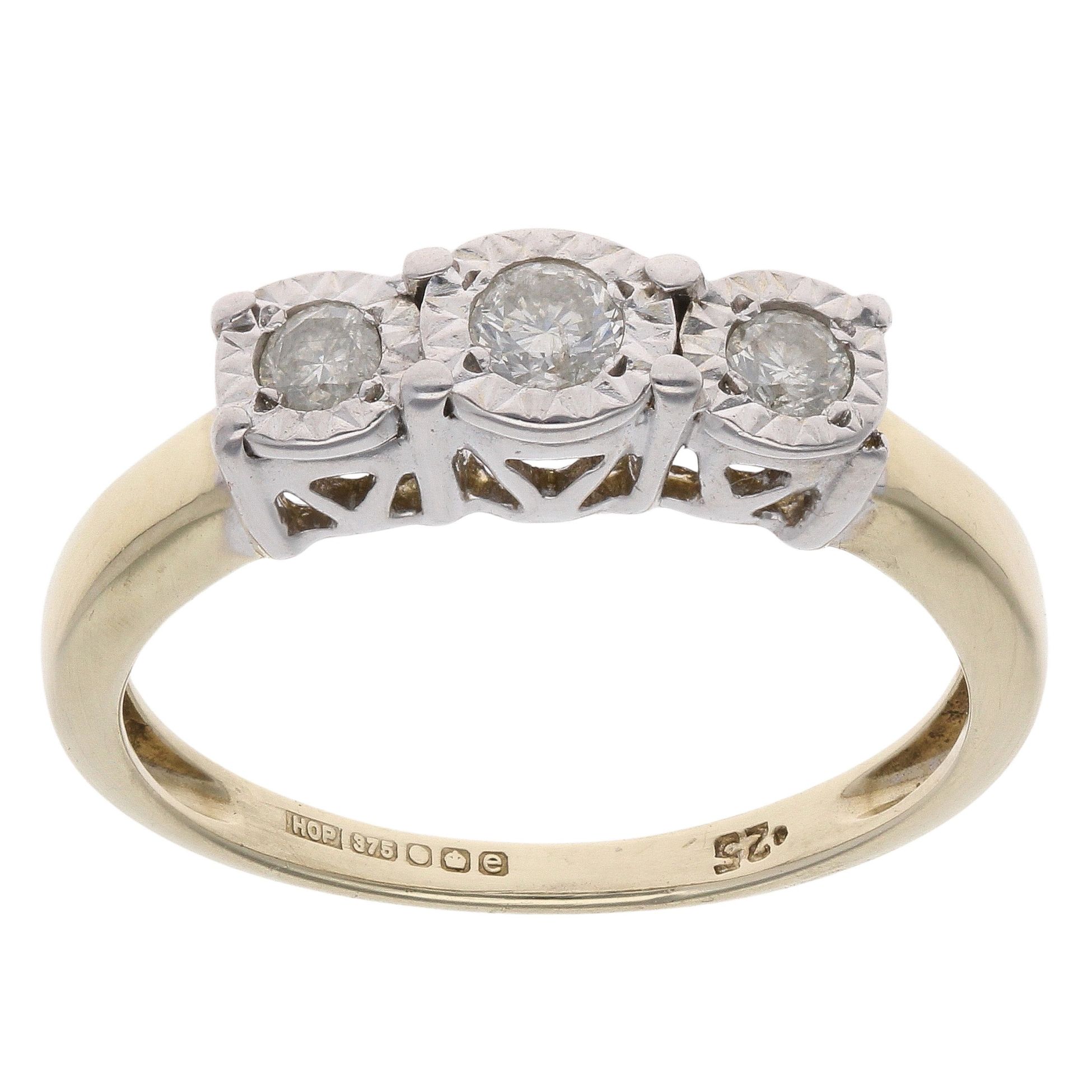 9ct Yellow Gold 0.25ct Brilliant Cut Diamond Trilogy Ring