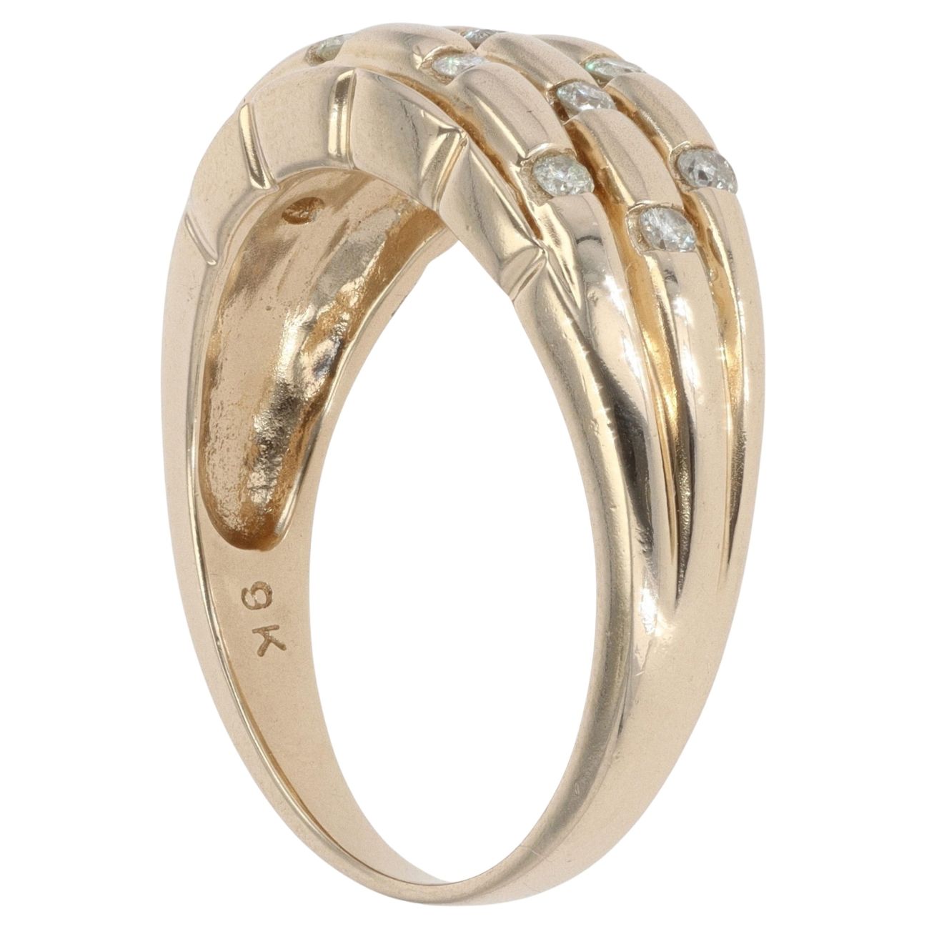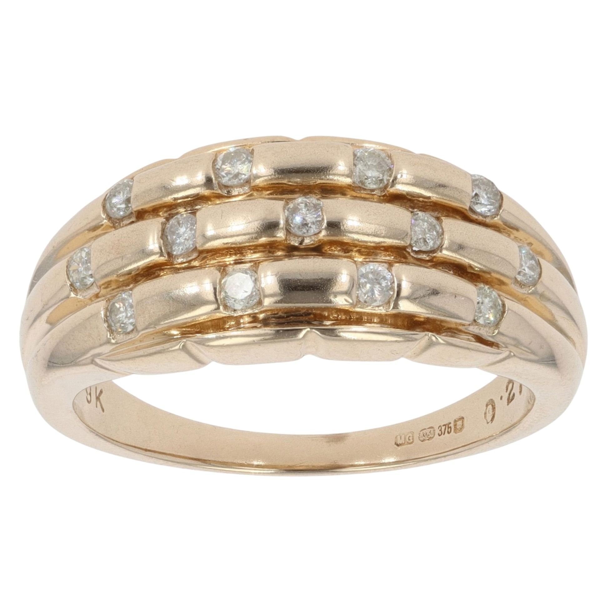 9ct Yellow Gold 0.27ct Brilliant Cut Diamond Three Row Ring