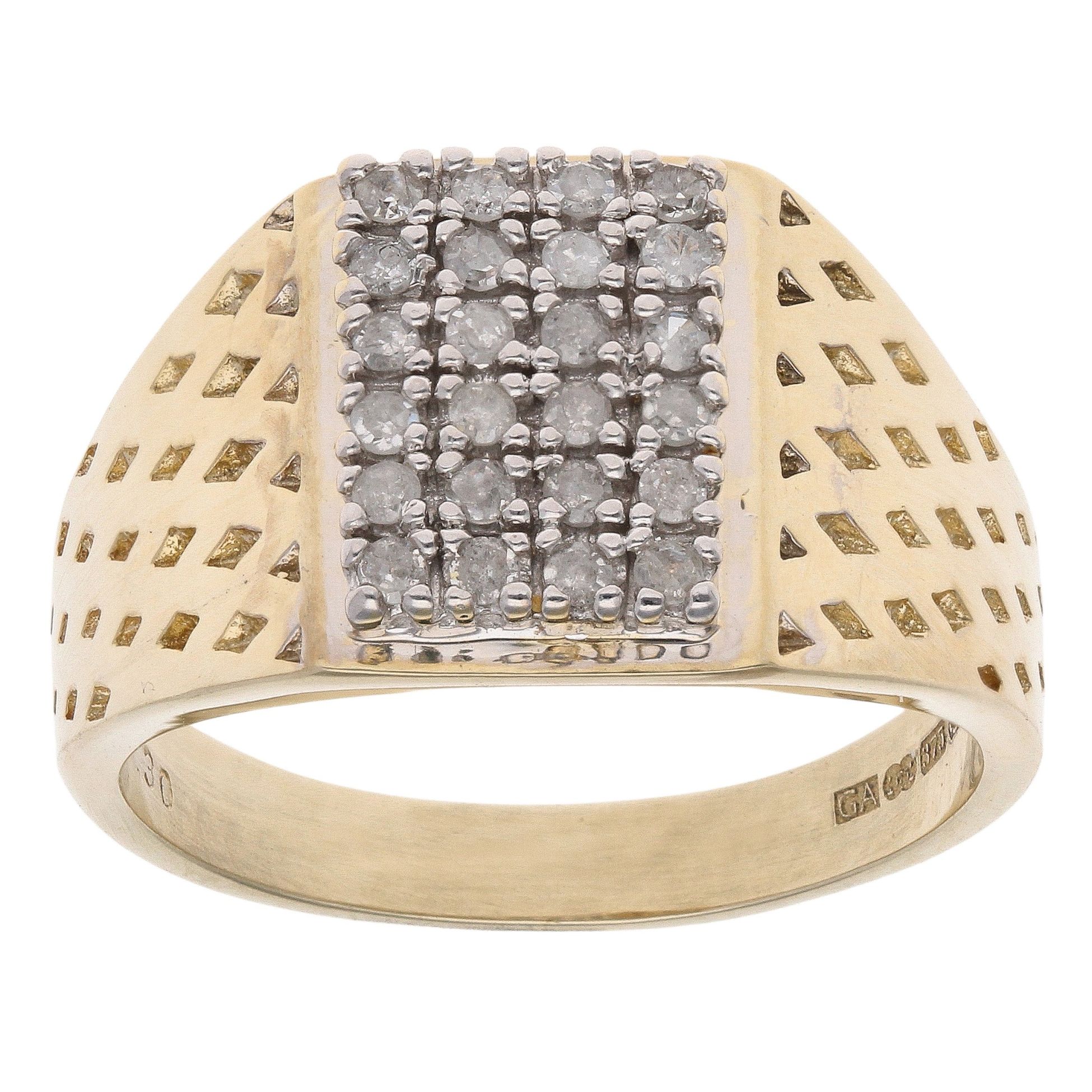 9ct Yellow Gold 0.30ct Diamond Cluster Signet Ring