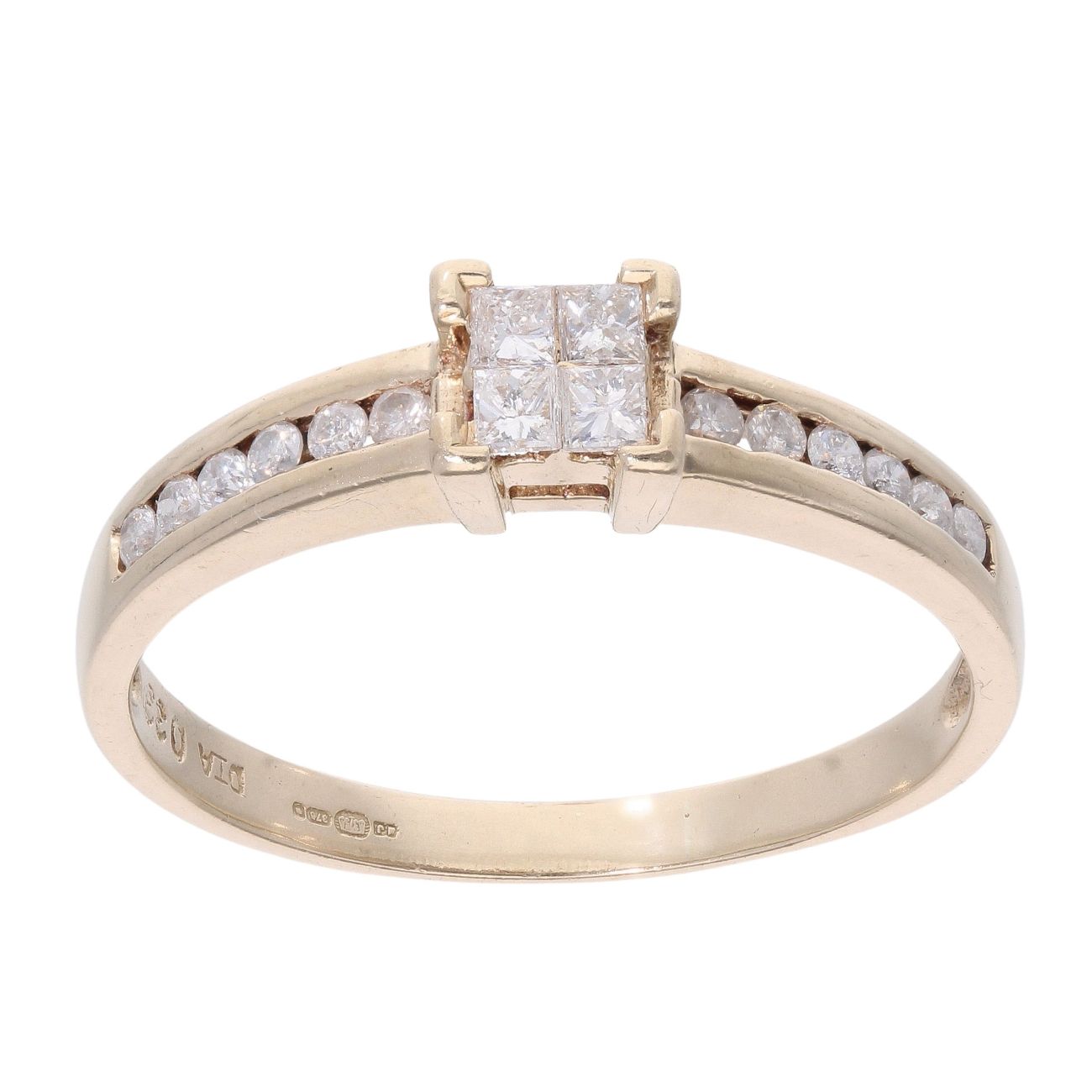 9ct Yellow Gold 0.33ct Princess and Brilliant Cut Diamond Cluster Ring