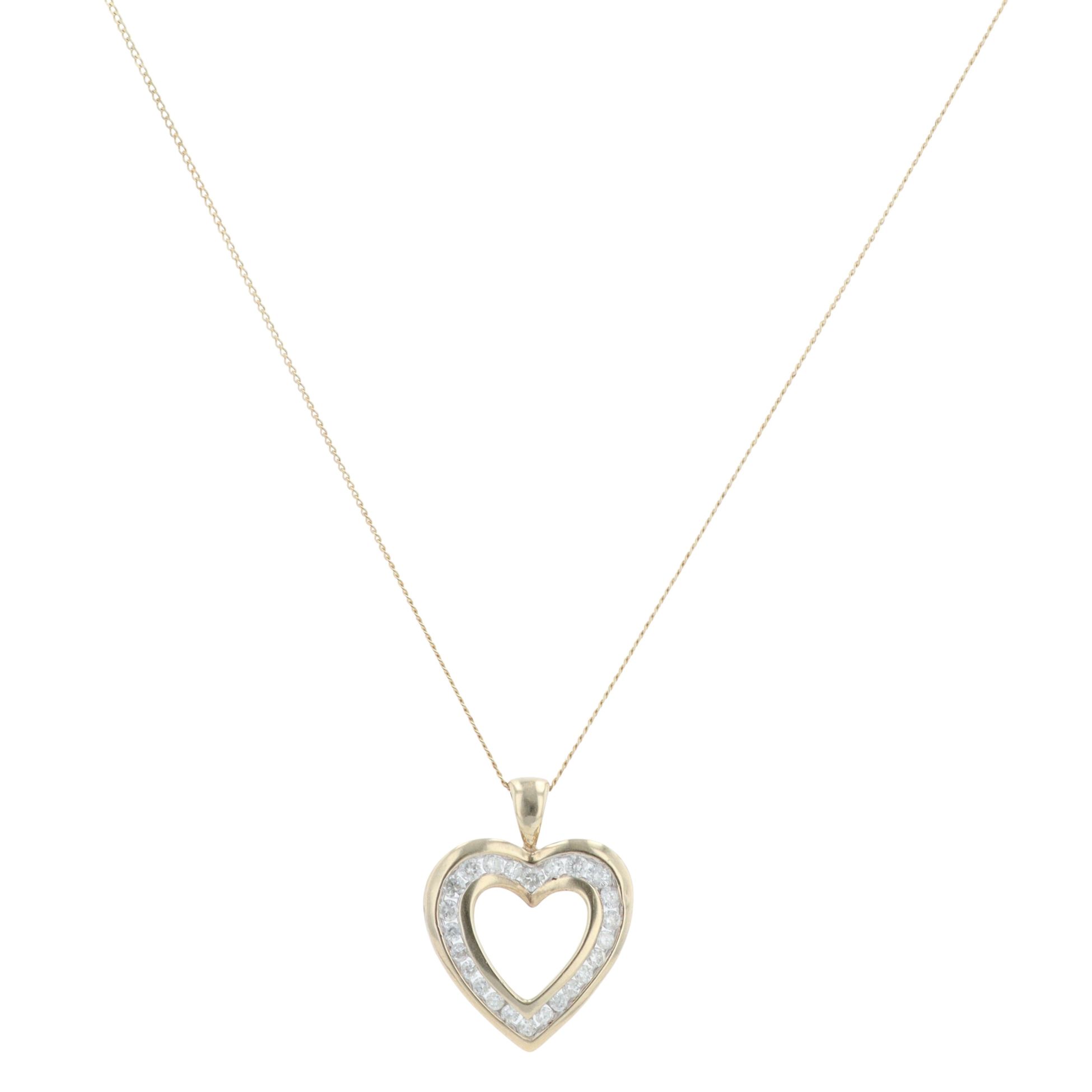 9ct Yellow Gold 0.35ct Brilliant Cut Diamond Heart Pendant And Chain 18"