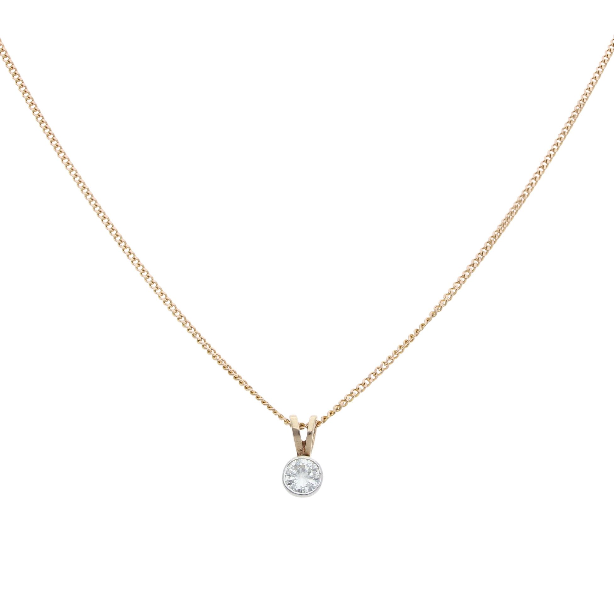 9ct Yellow Gold 0.35ct Brilliant Cut Diamond Solitaire Pendant And Chain 18"