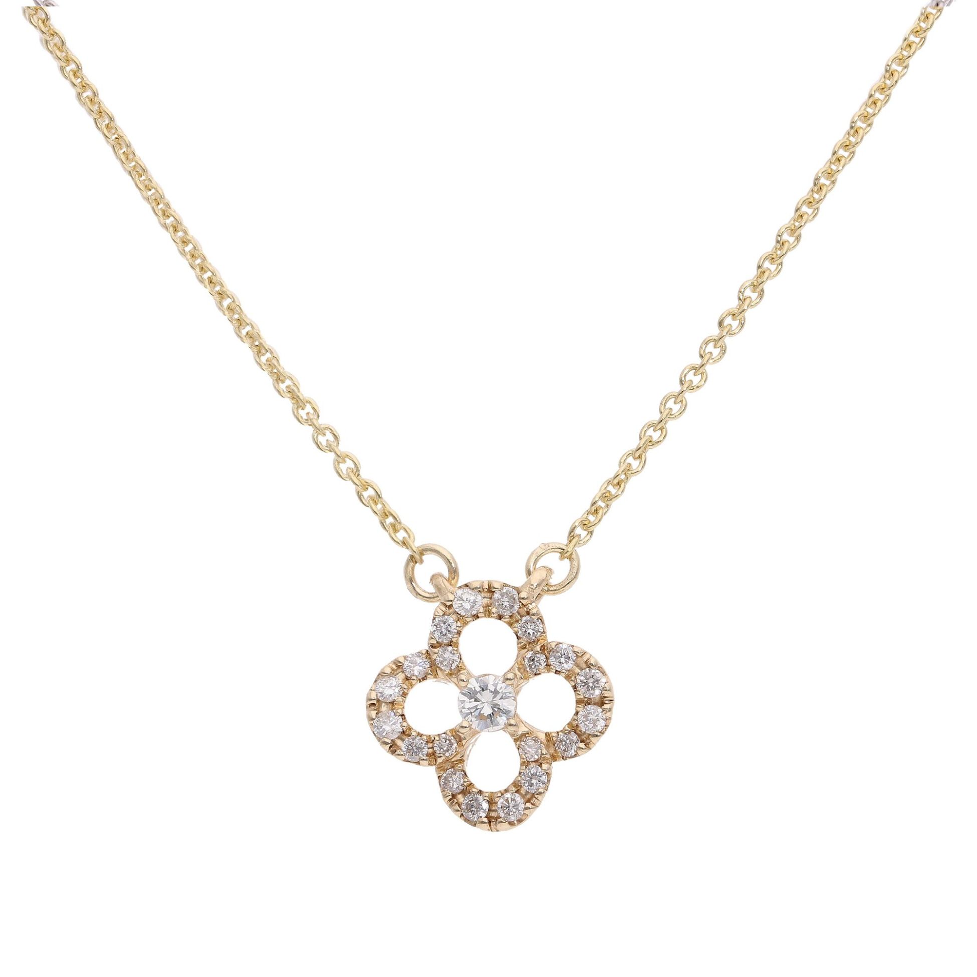 9ct Yellow Gold 0.35ct Diamond Quatrefoil Pendant and Integral Chain 16" by Anya Belle