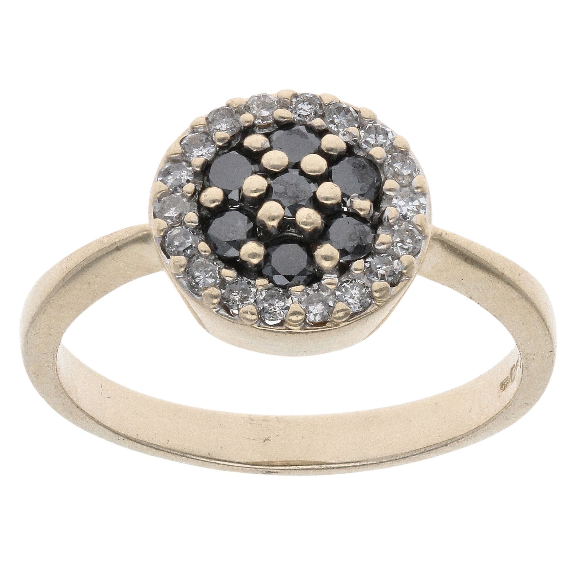 9ct Yellow Gold 0.50ct Brilliant Cut Black And Colourless Diamond Cluster Ring