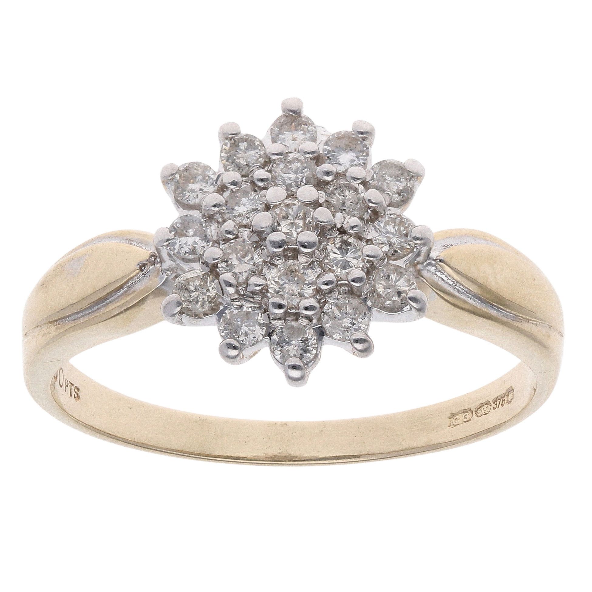 9ct Yellow Gold 0.50ct Brilliant Cut Diamond Cluster Ring