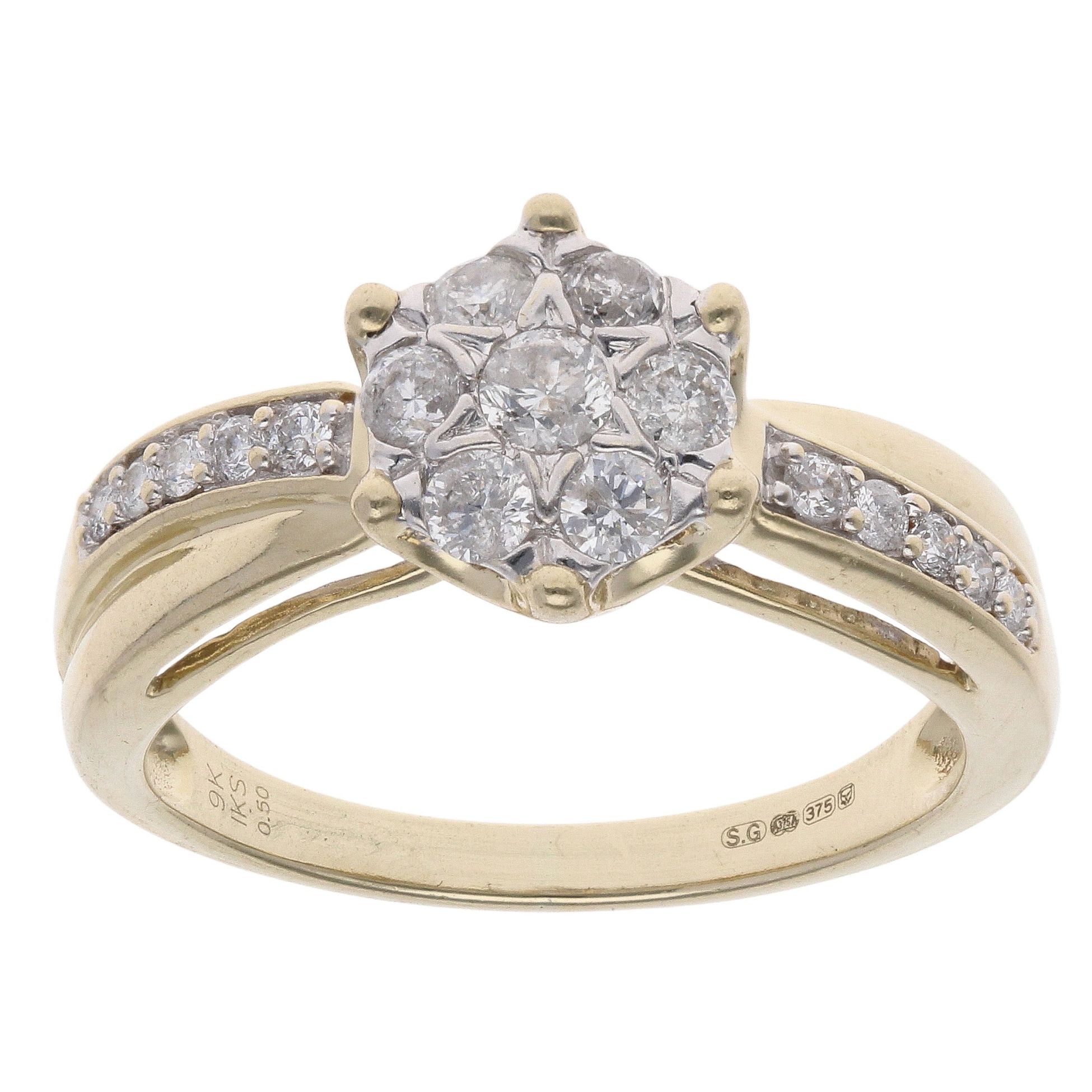 9ct Yellow Gold 0.50ct Brilliant Cut Diamond Cluster Ring