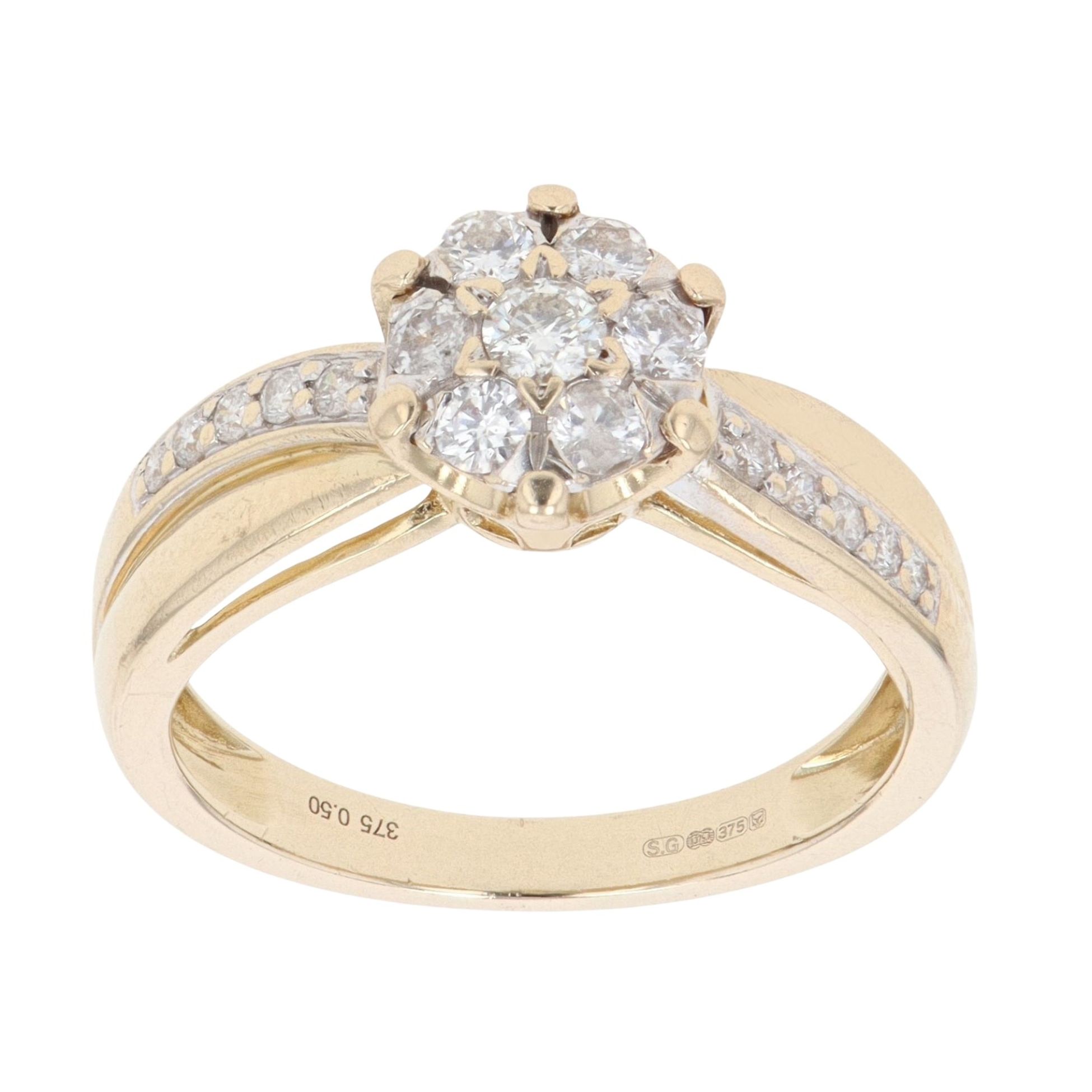 9ct Yellow Gold 0.50ct Brilliant Cut Diamond Cluster Ring