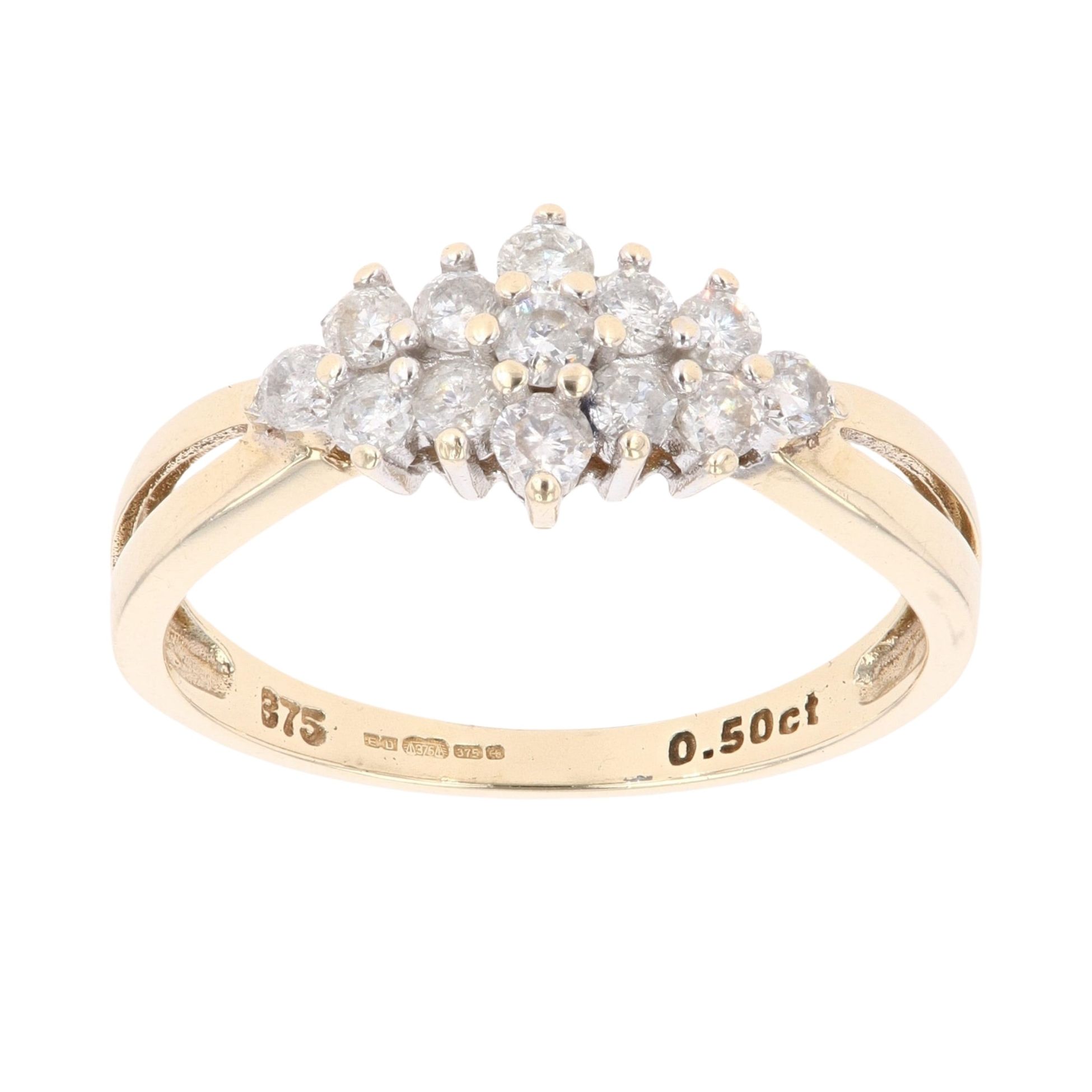 9ct Yellow Gold 0.50ct Brilliant Cut Diamond Cluster Ring