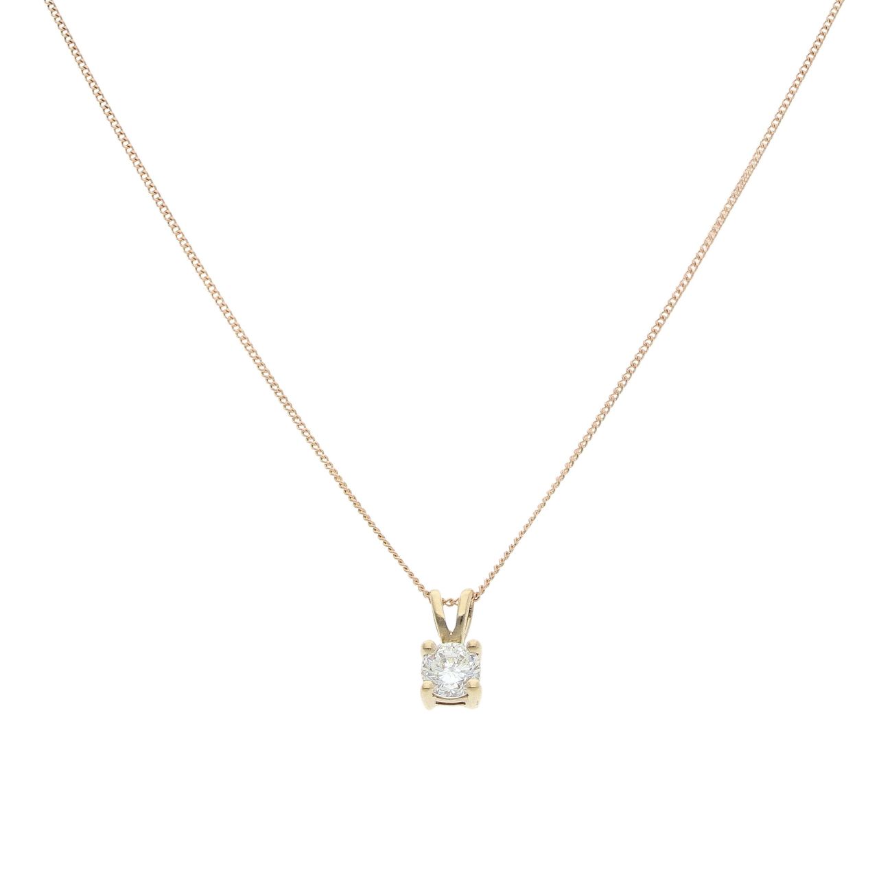 9ct Yellow Gold 0.50ct Brilliant Cut Diamond Pendant And Chain 18"