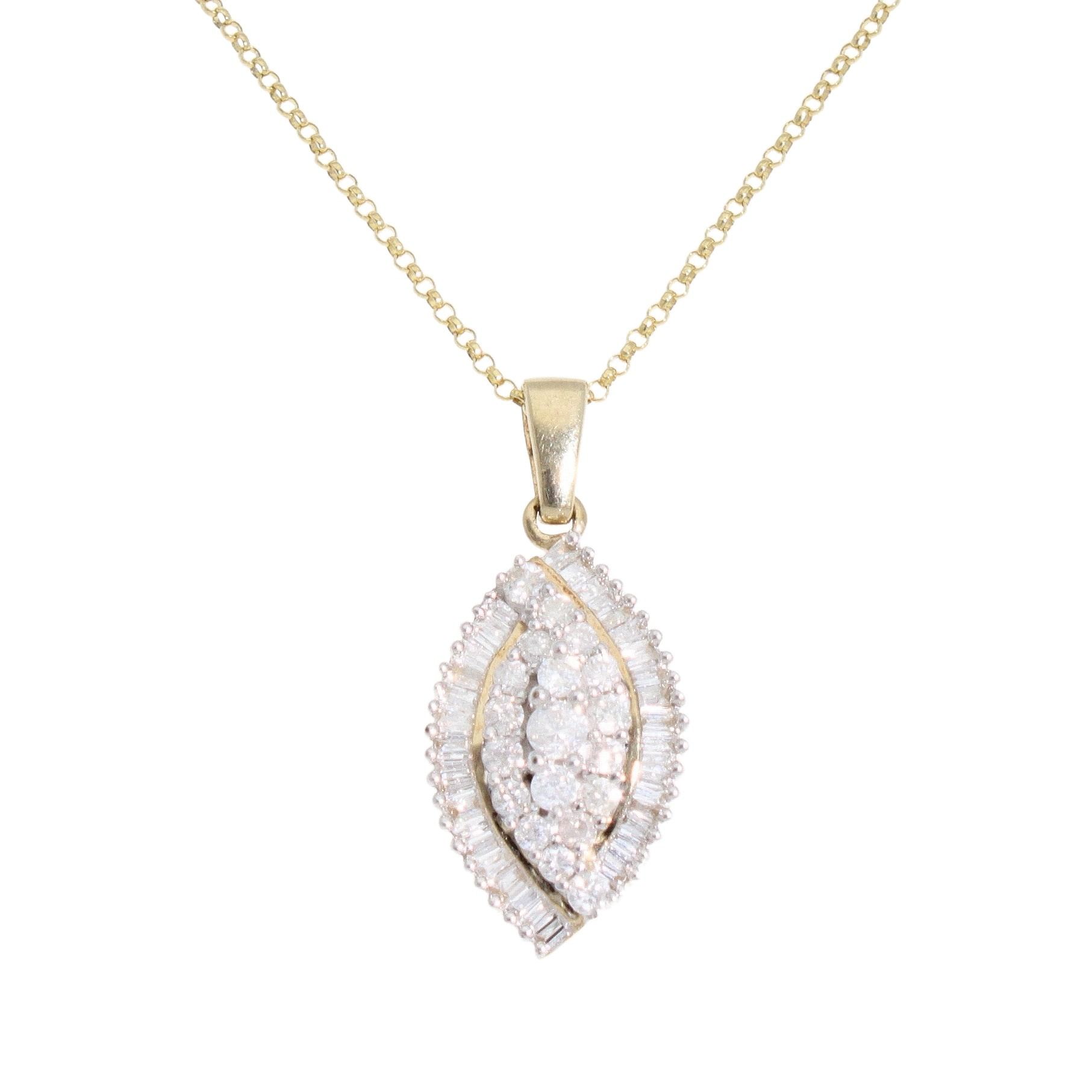 9ct Yellow Gold 0.50ct Diamond Pear Shaped Pendant and Chain 18"