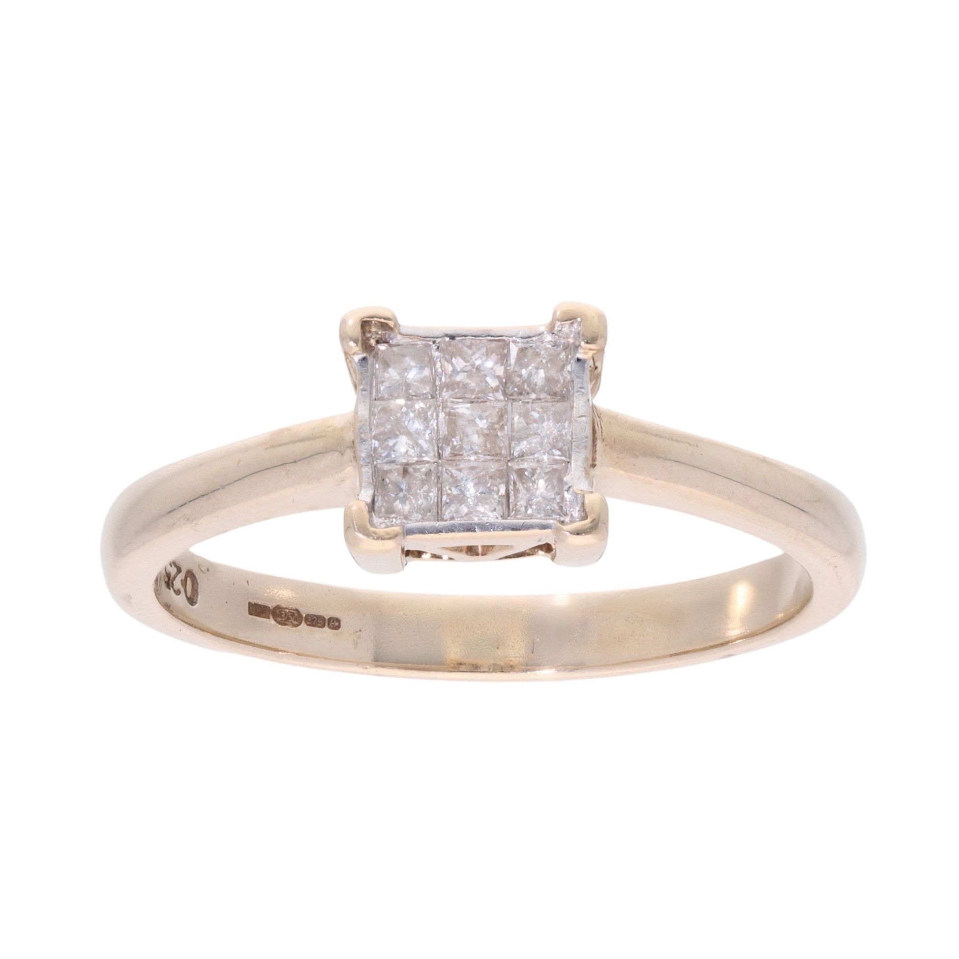 9ct Yellow Gold 0.50ct Diamond Square Cluster Ring