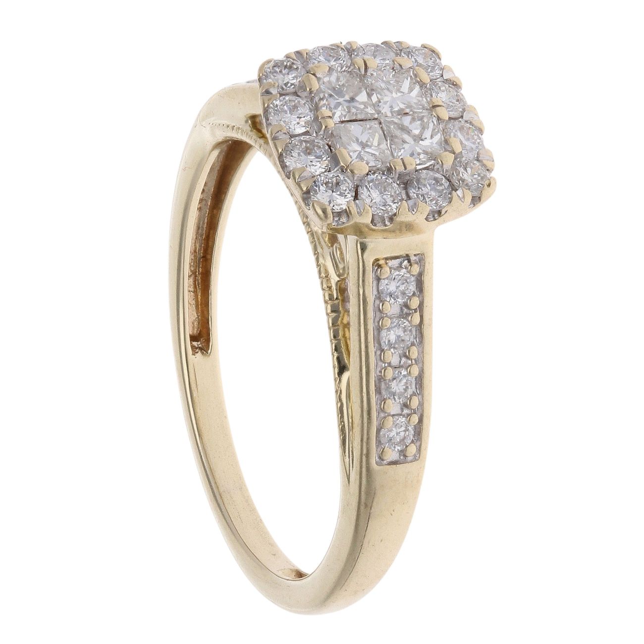 9ct Yellow Gold 0.50ct Princess And Brilliant Cut Diamond Cluster Ring