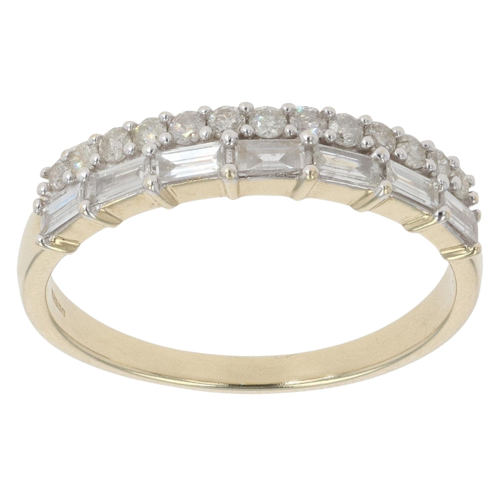 9ct Yellow Gold 0.65ct Baguette and Brilliant Cut Diamond Two Row Ring