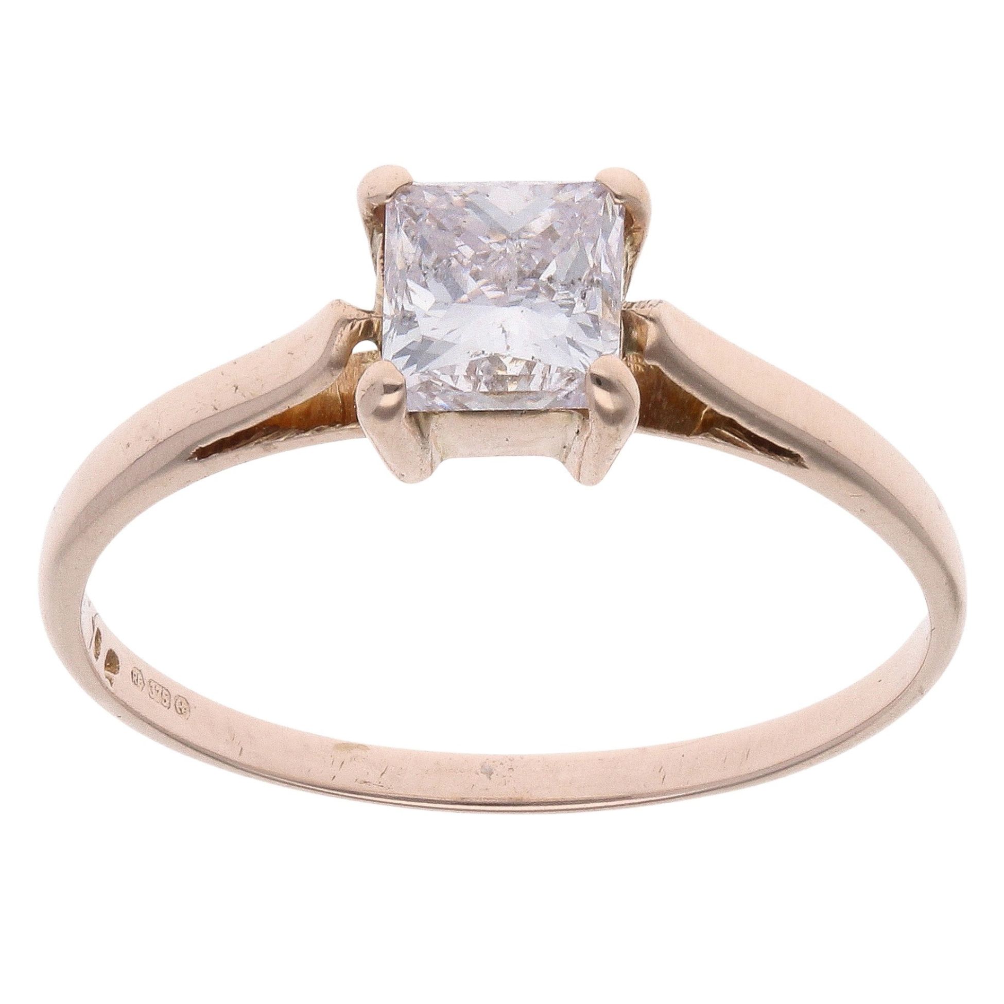 9ct Yellow Gold 0.65ct Princess Cut Diamond Solitaire Ring