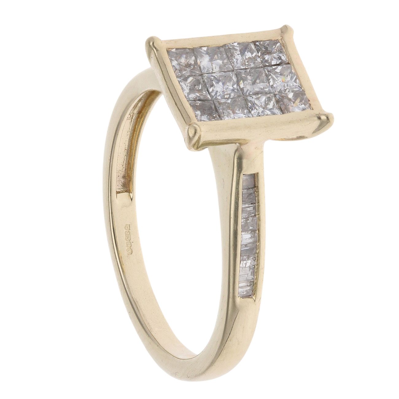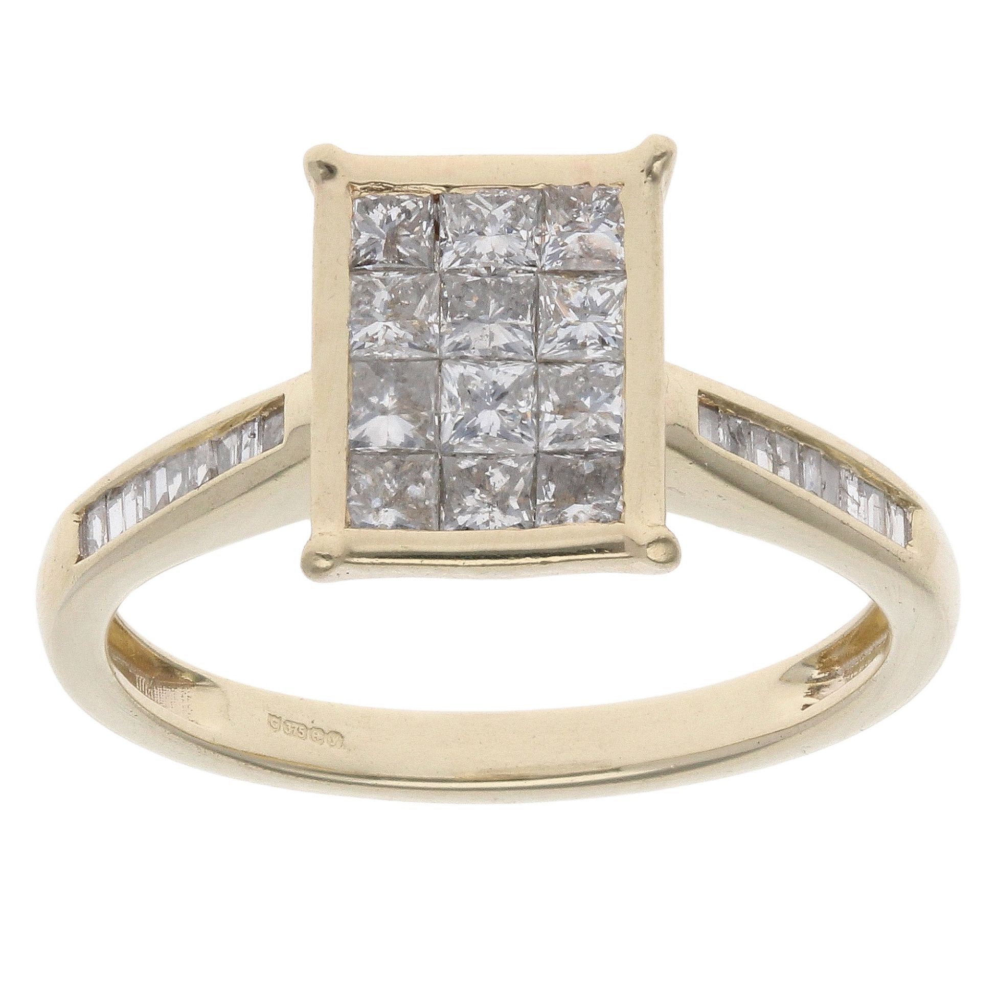 9ct Yellow Gold 0.75ct Princess Cut Diamond Cluster Ring