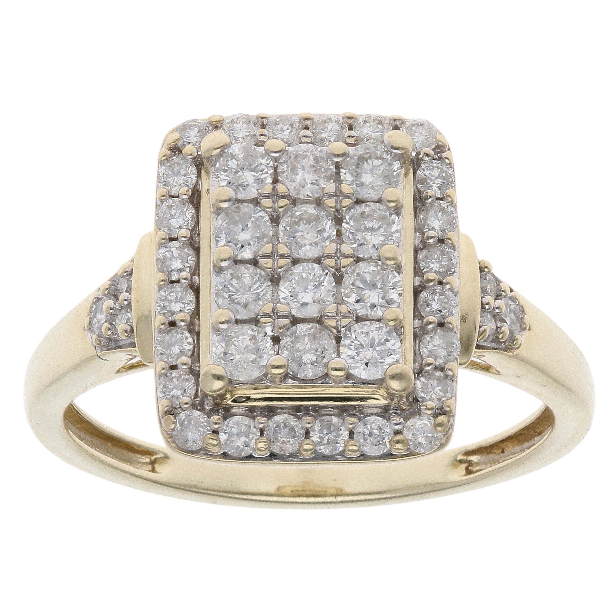 9ct Yellow Gold 0.90ct Brilliant Cut Diamond Cluster Ring