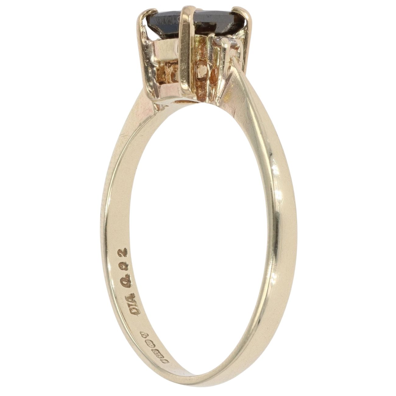 9ct Yellow Gold 0.92ct Black And White Princess Cut Diamond Solitaire Ring