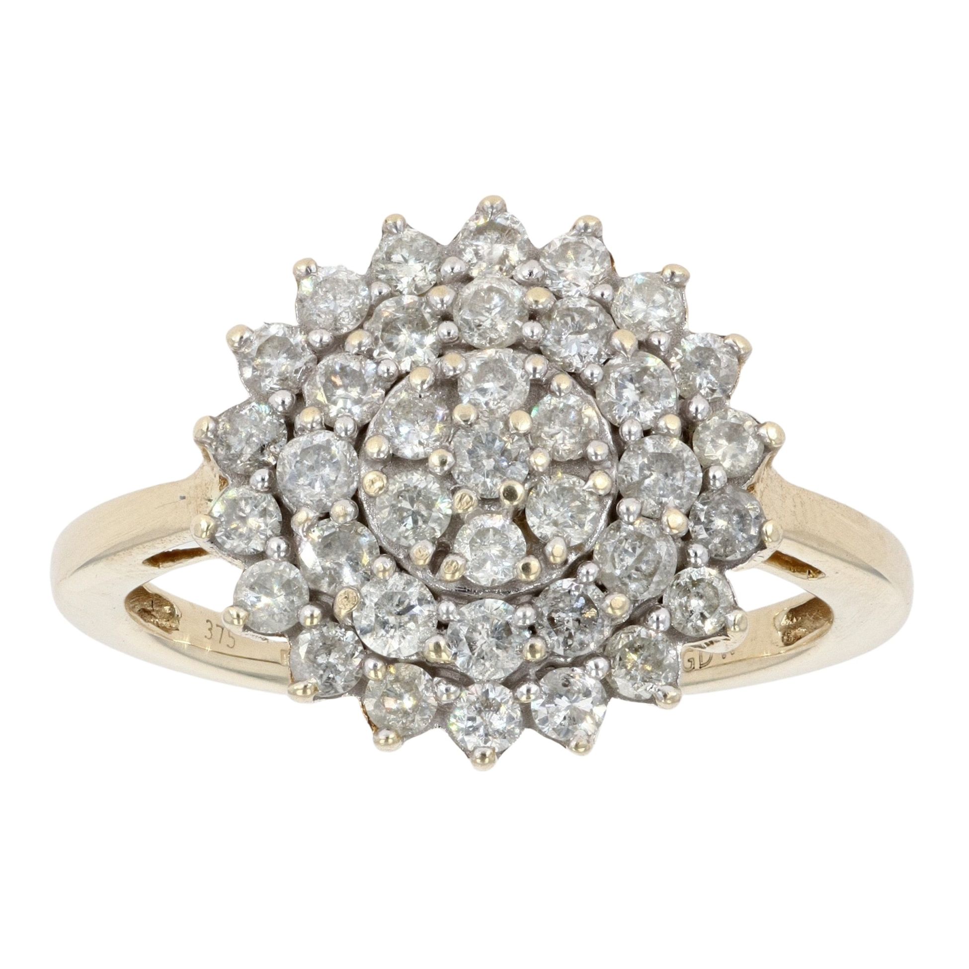 9ct Yellow Gold 1.00ct Diamond Cluster Ring
