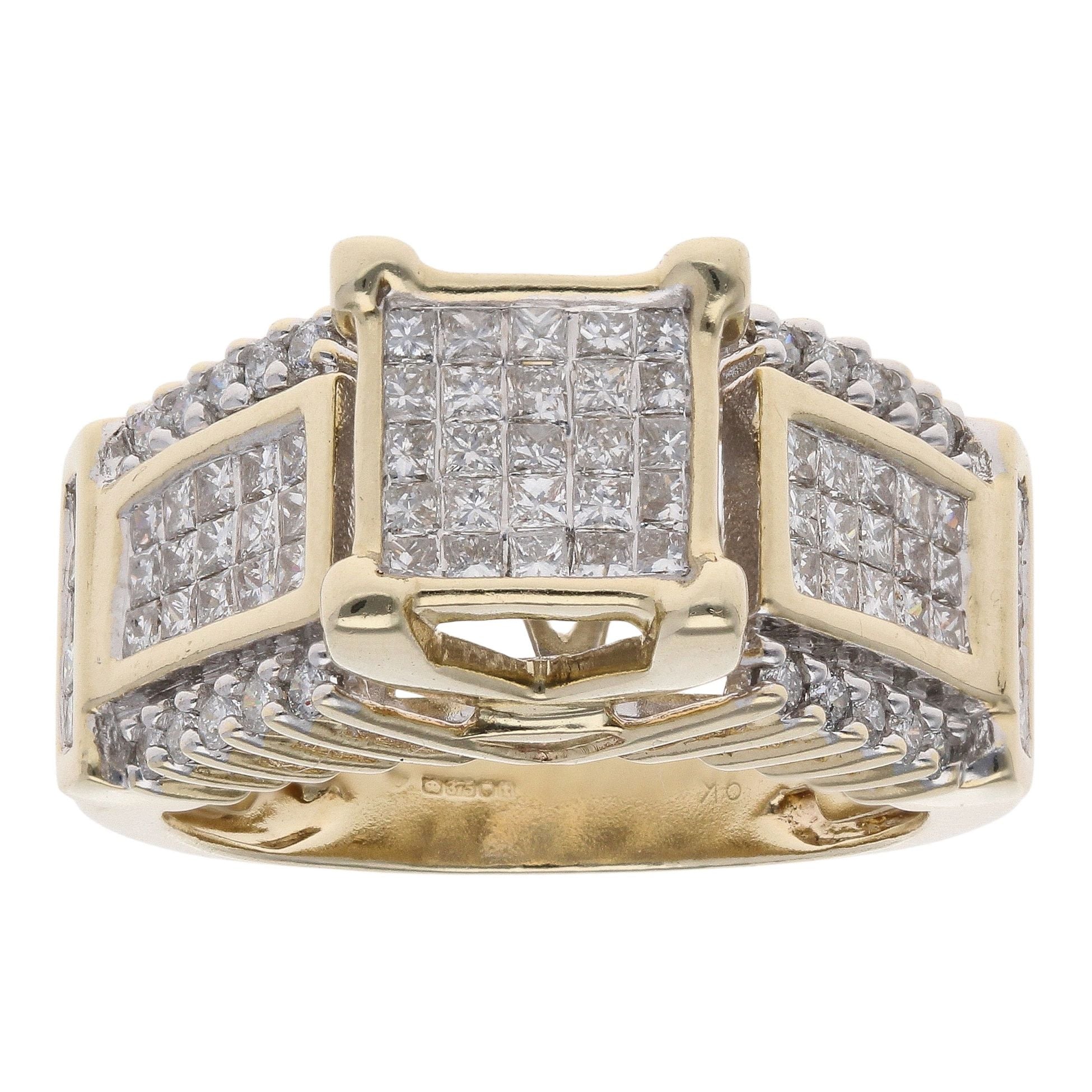 9ct Yellow Gold 1.10ct Diamond Cluster Ring