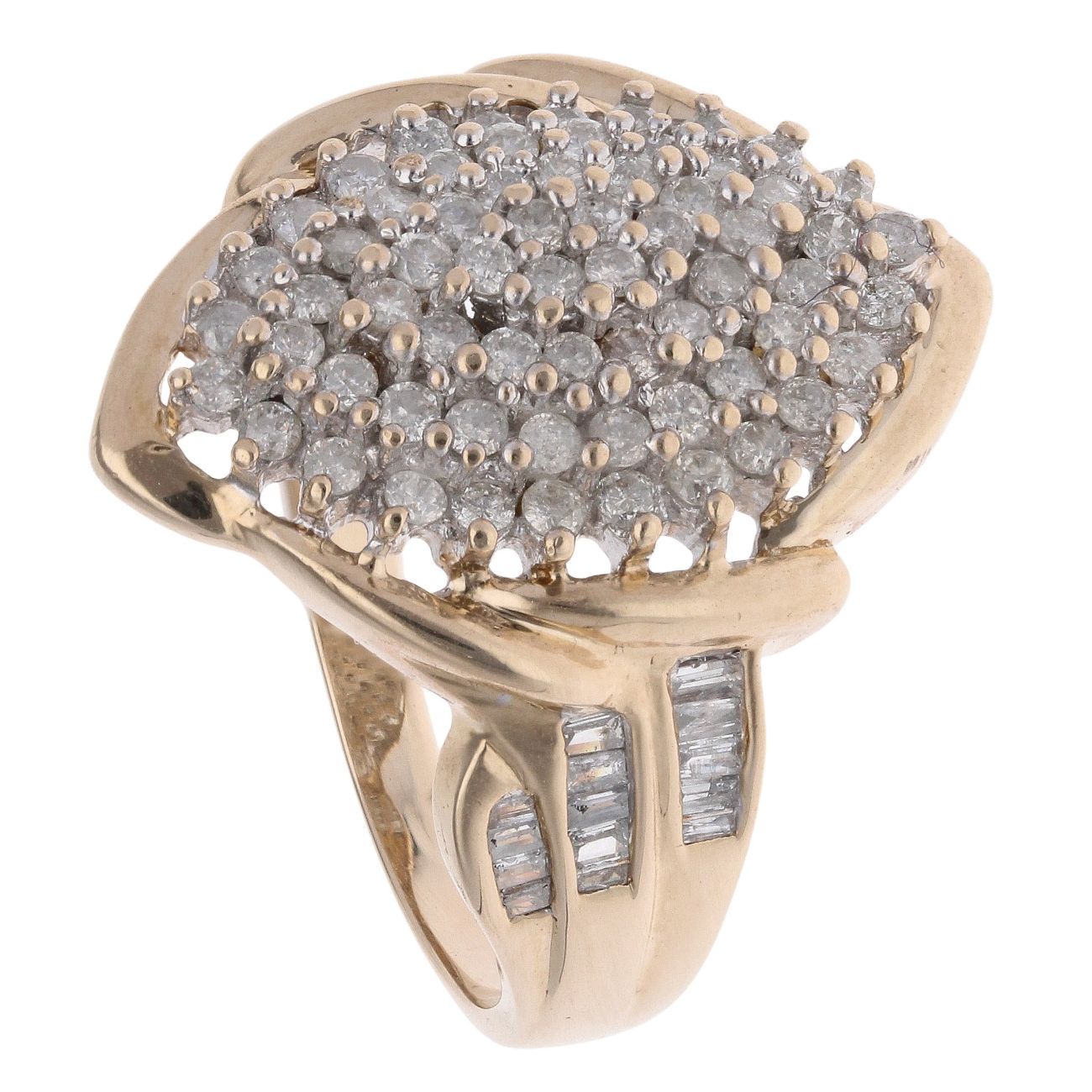 9ct Yellow Gold 1ct Brilliant and Baguette Cut Diamond Cluster Ring