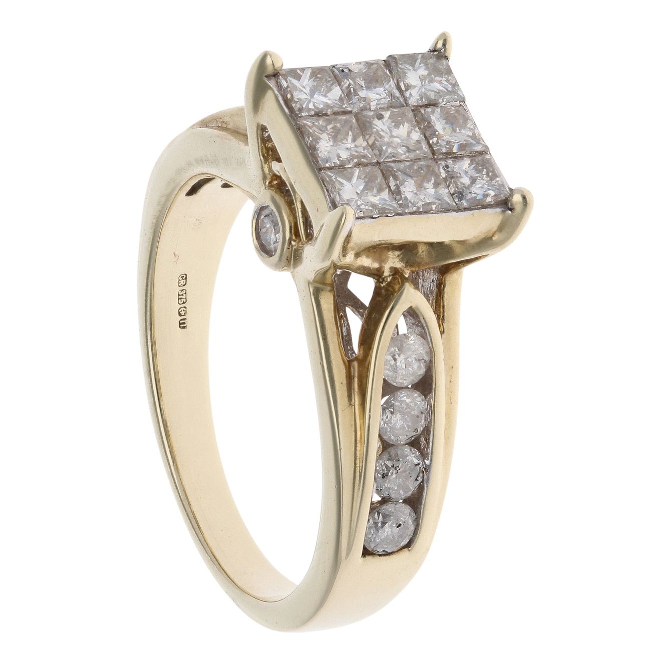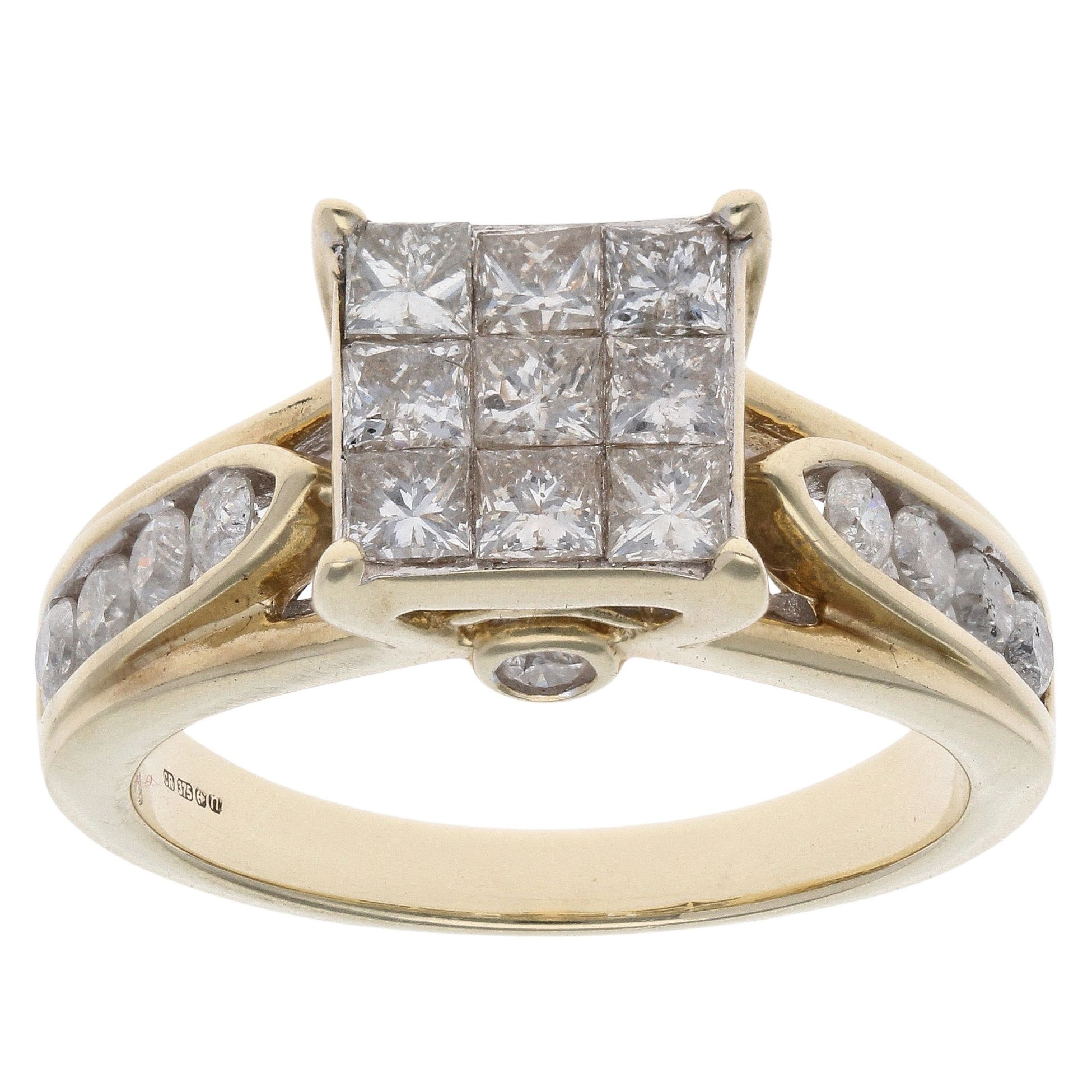 9ct Yellow Gold 2.00ct Diamond Princess And Brilliant Cut Cluster Ring