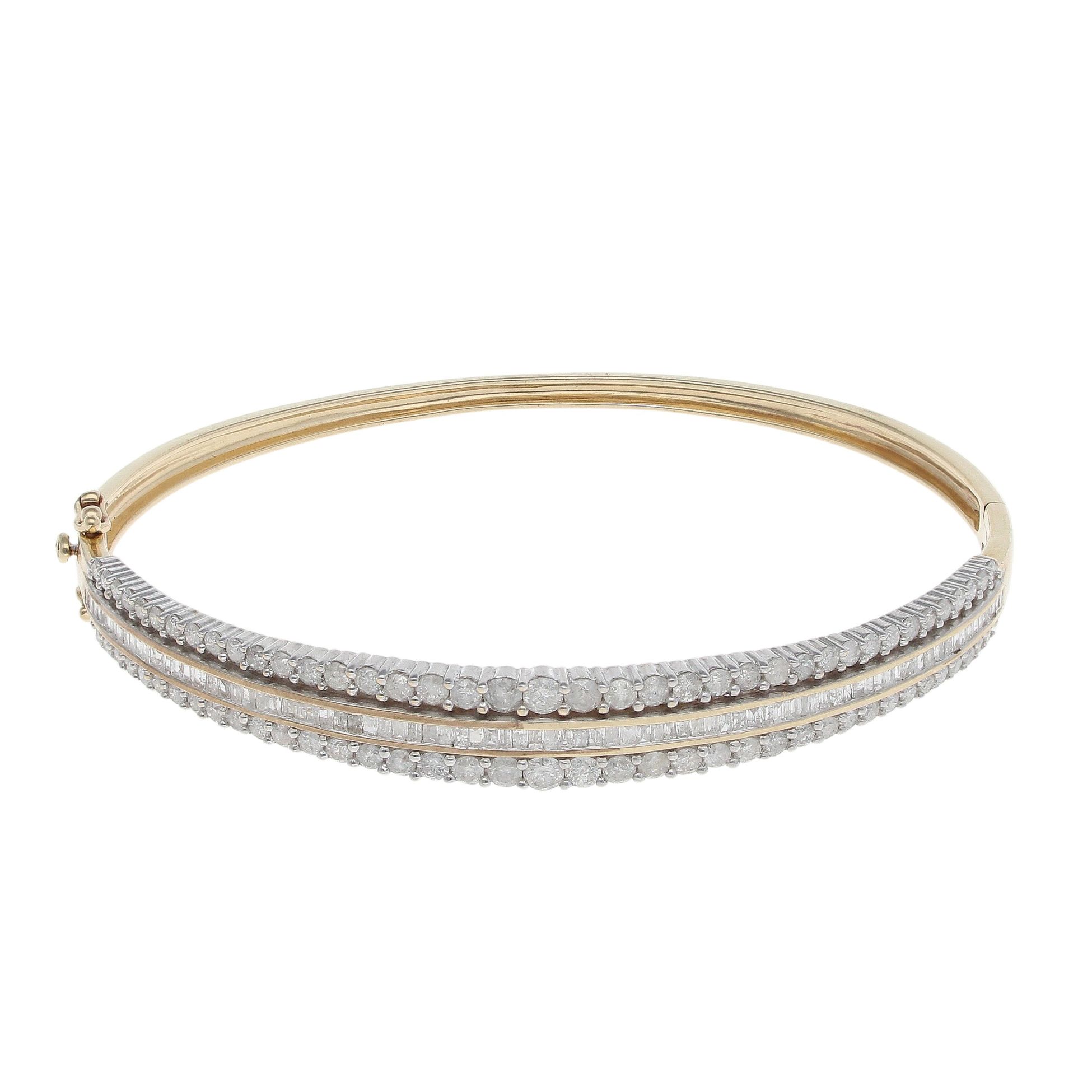 9ct Yellow Gold 3.00ct Brilliant and Princess Cut Diamond Bangle
