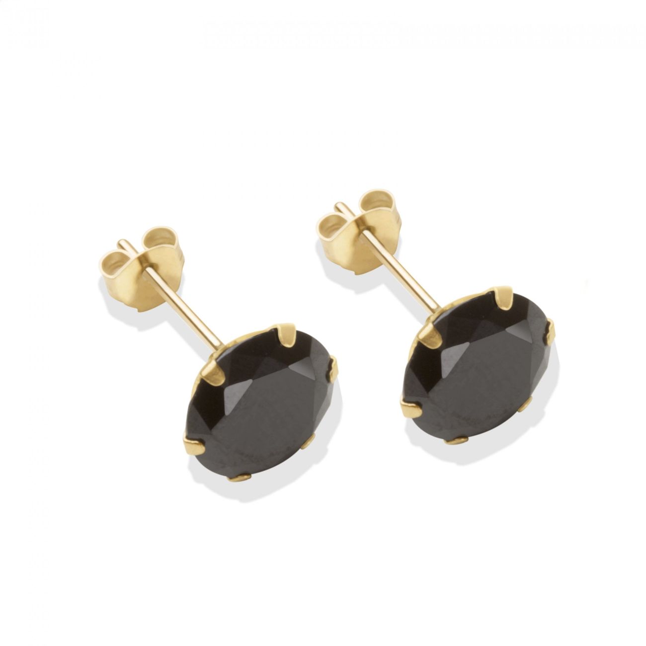 9ct yellow gold 8mm black CZ stud Earrings