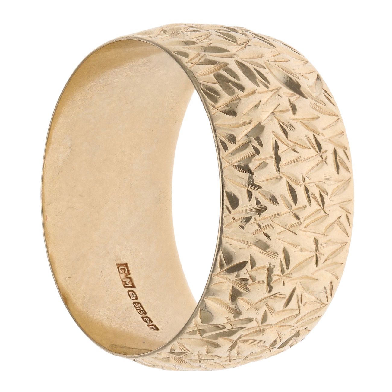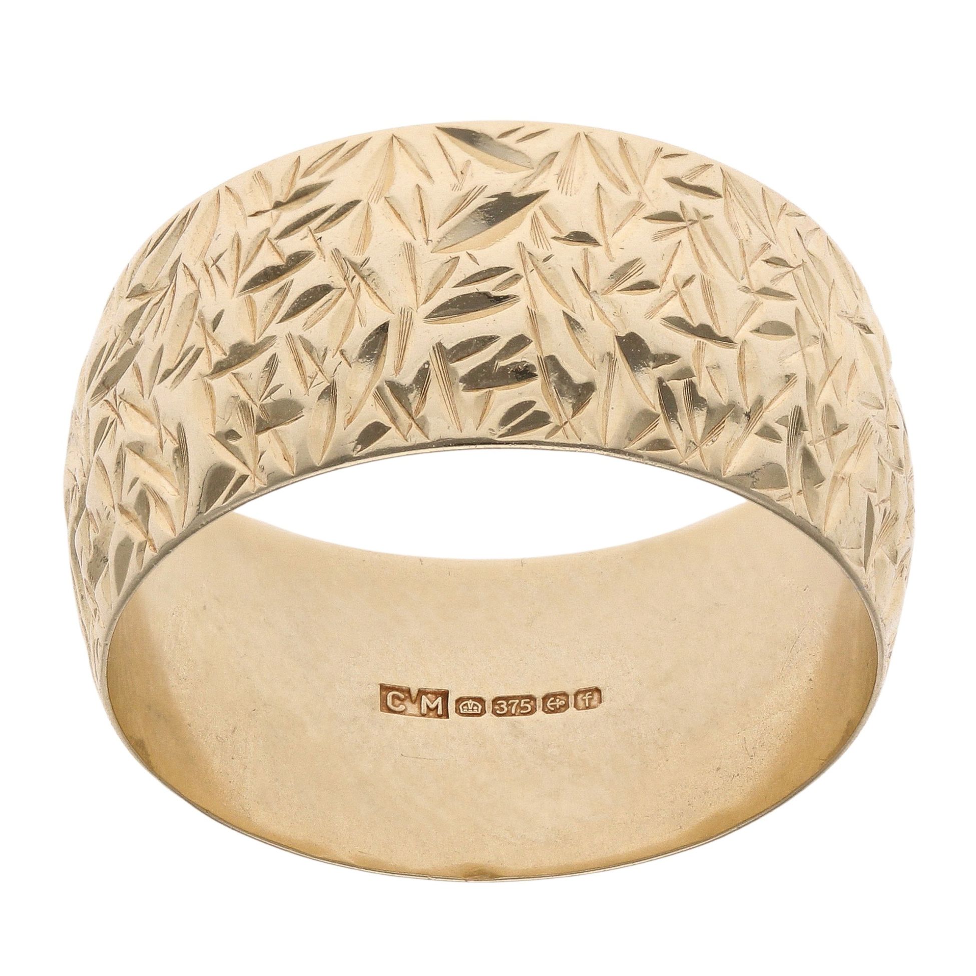 9ct Yellow Gold 9.4mm Patterned Wedding Band