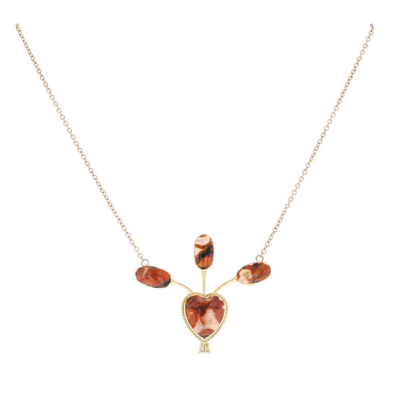 9ct Yellow Gold Agate Heart Pendant And Chain 18"