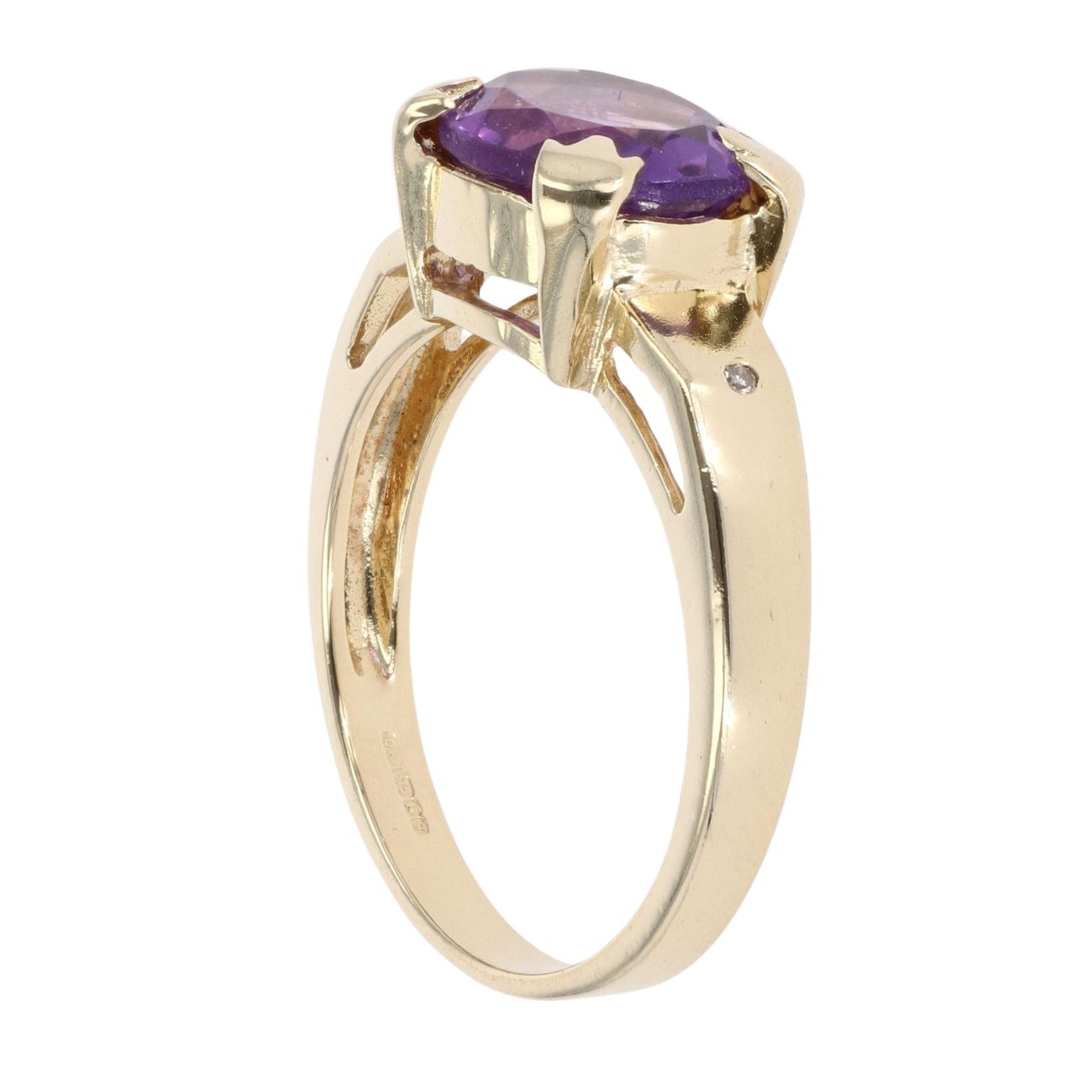9ct Yellow Gold Amethyst and 0.05ct Diamond Ring