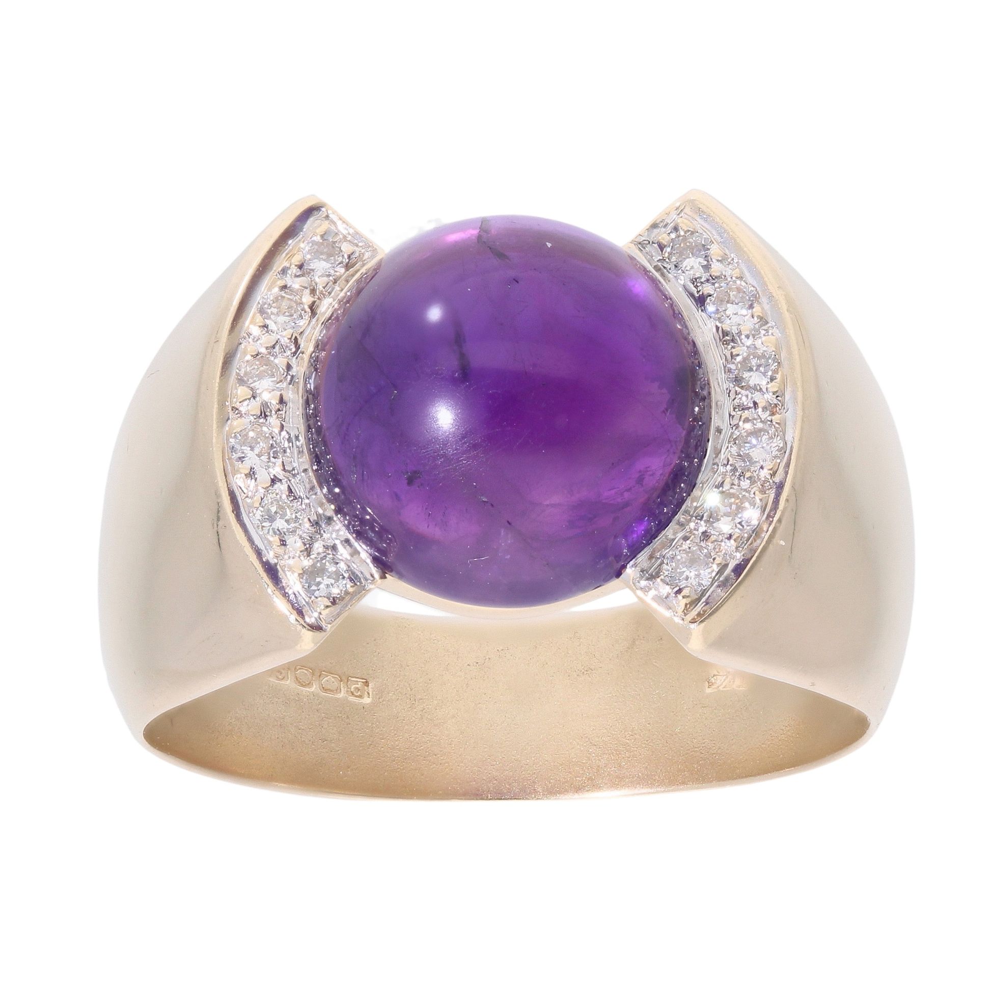 9ct Yellow Gold Amethyst and 0.10ct Diamond Dress Ring