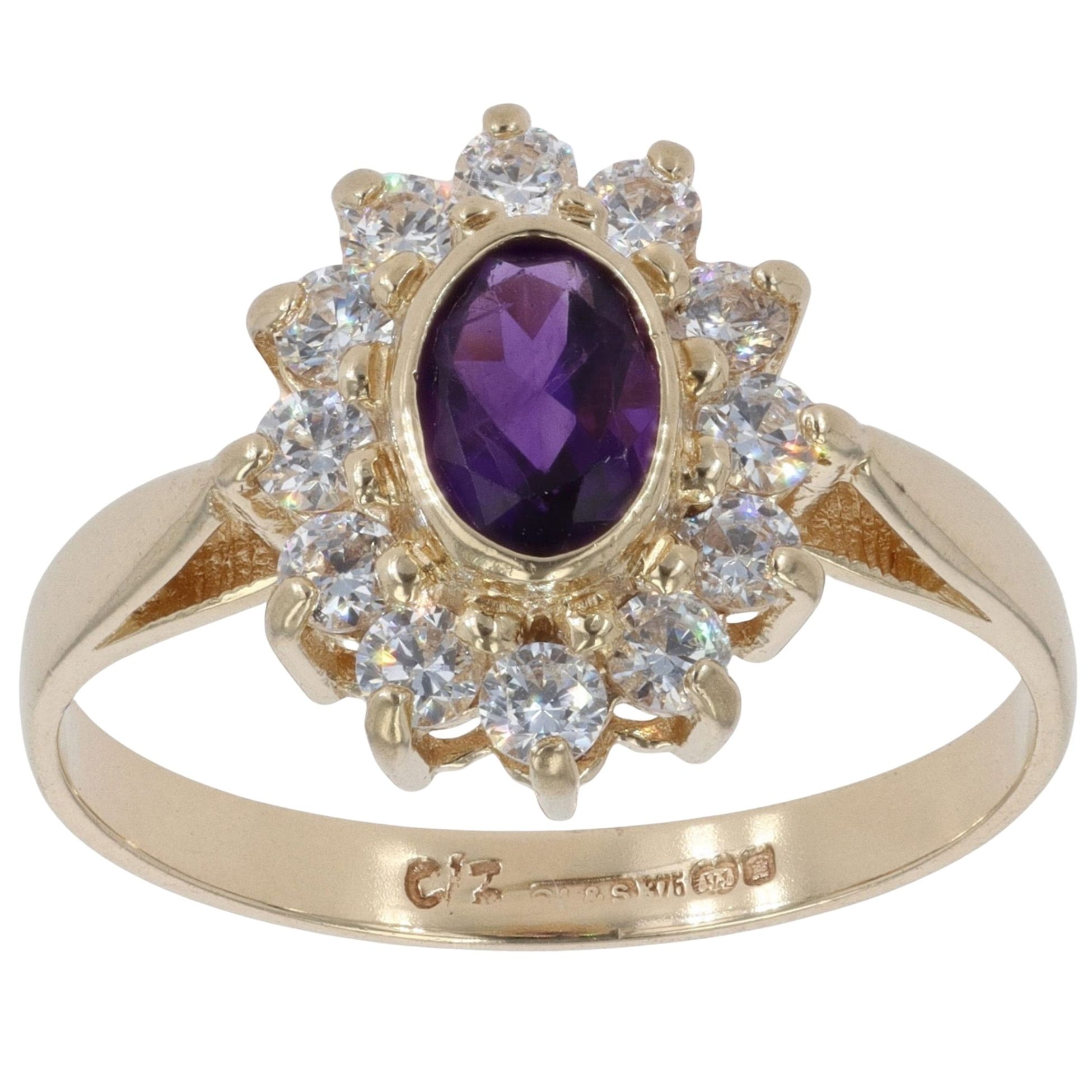 9ct Yellow Gold Amethyst And Cubic Zirconia Cluster Ring