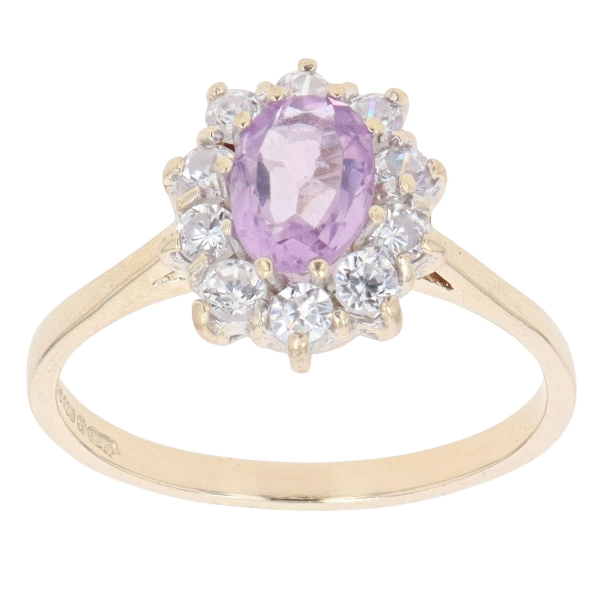 9ct Yellow Gold Amethyst And Cubic Zirconia Cluster Ring
