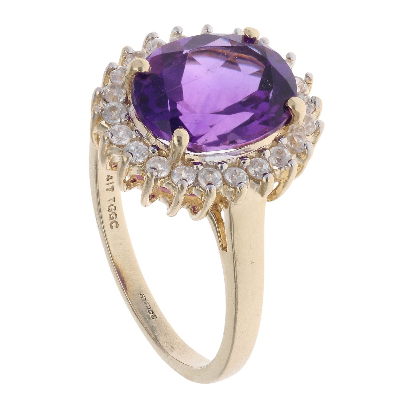 9ct Yellow Gold Amethyst And Cubic Zirconia Cluster Ring