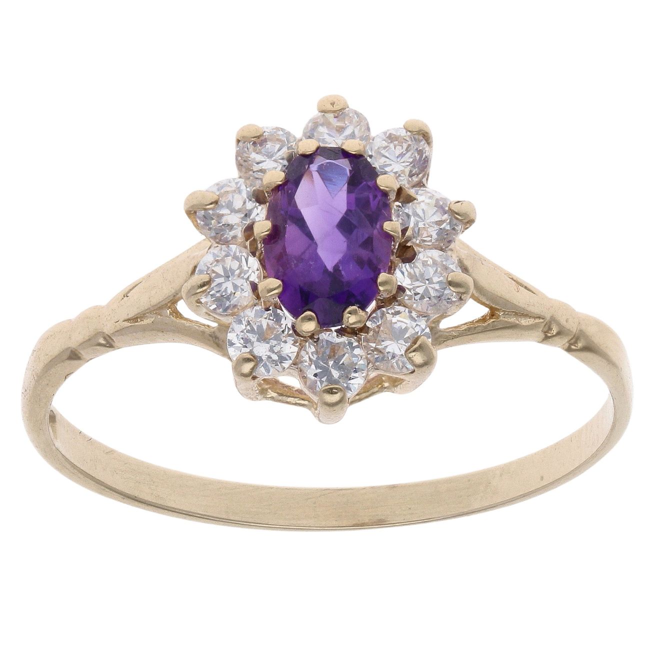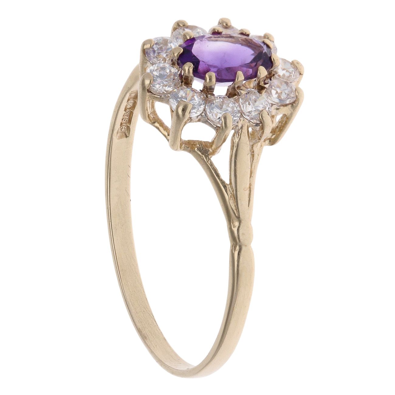 9ct Yellow Gold Amethyst And Cubic Zirconia Cluster Ring