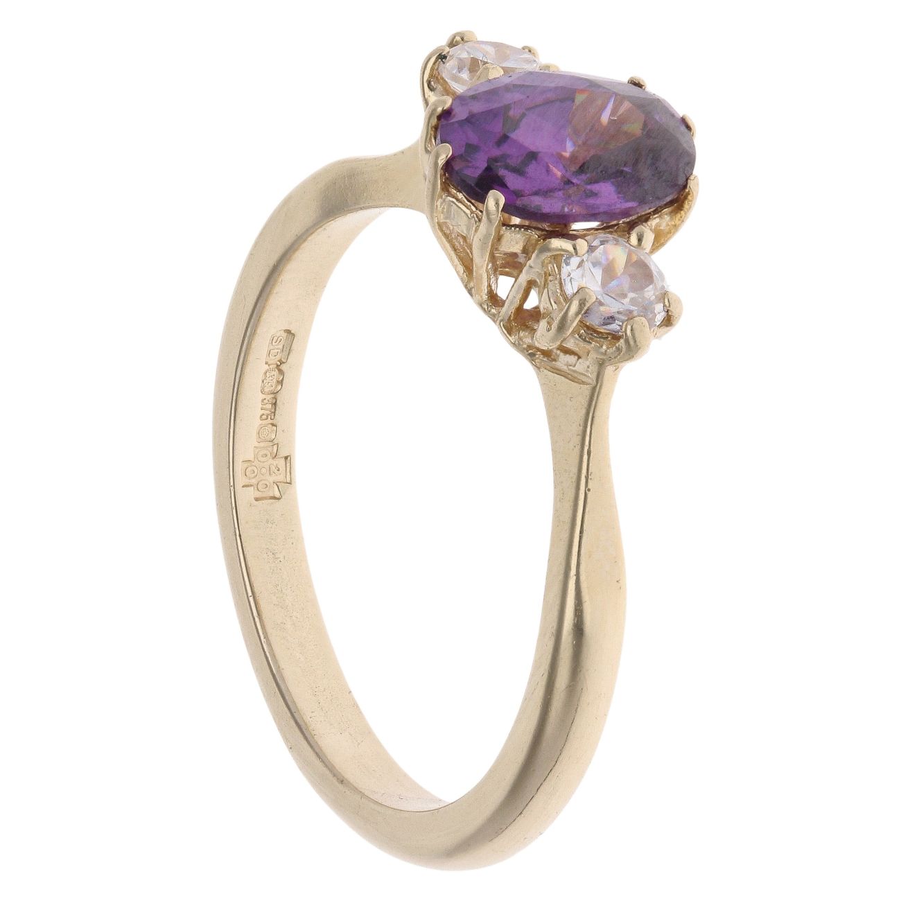 9ct Yellow Gold Amethyst And Cubic Zirconia Dress Ring