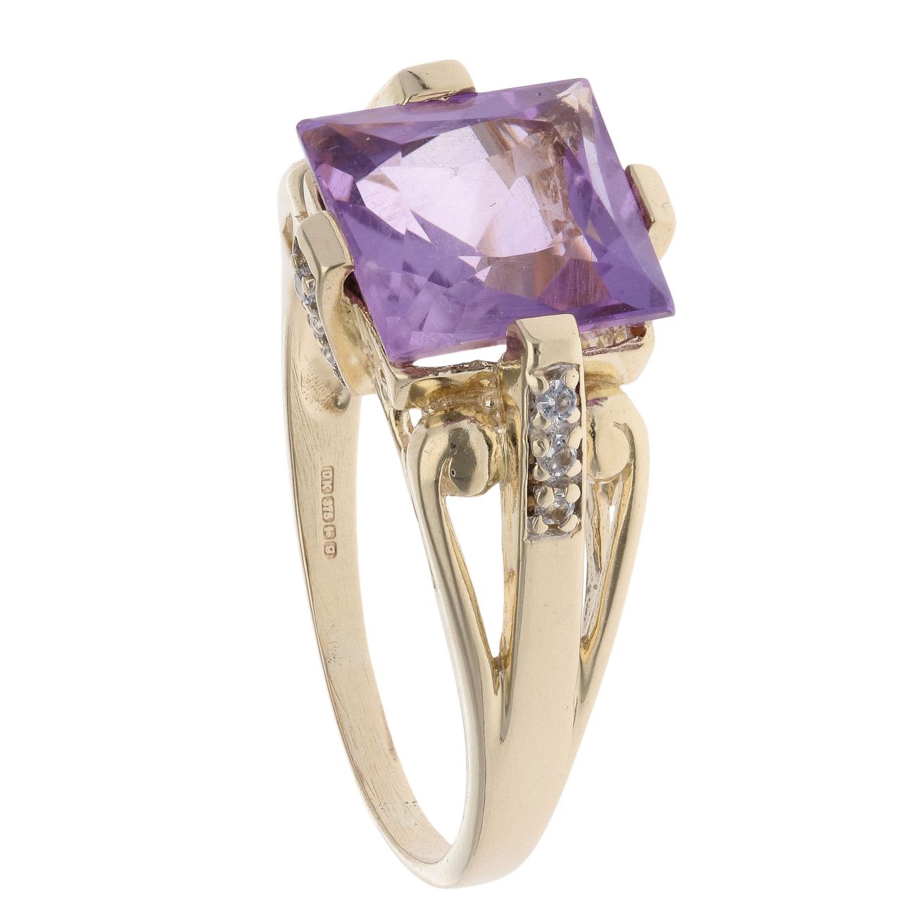 9ct Yellow Gold Amethyst And Cubic Zirconia Ring