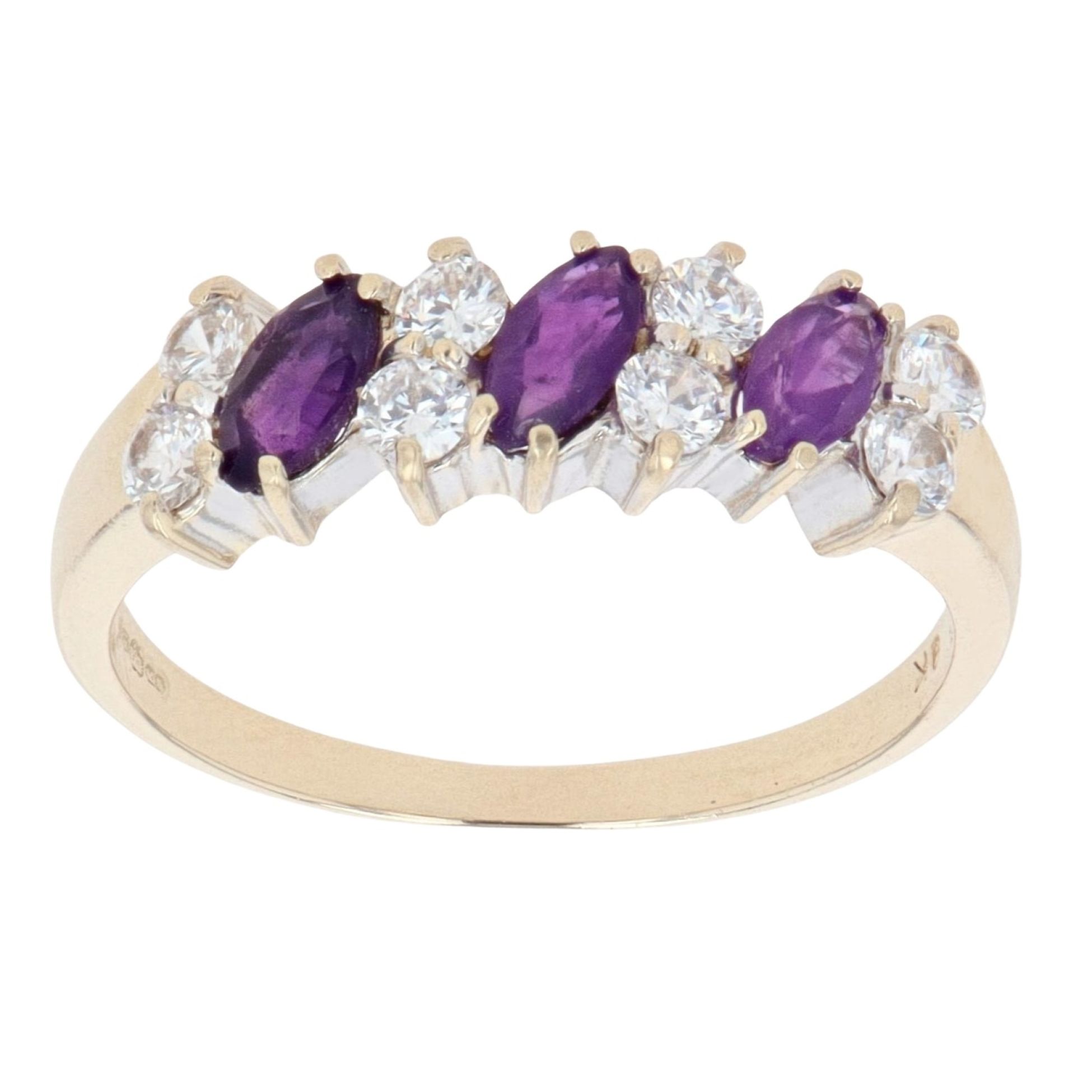 9ct Yellow Gold Amethyst And Cubic Zirconia Ring