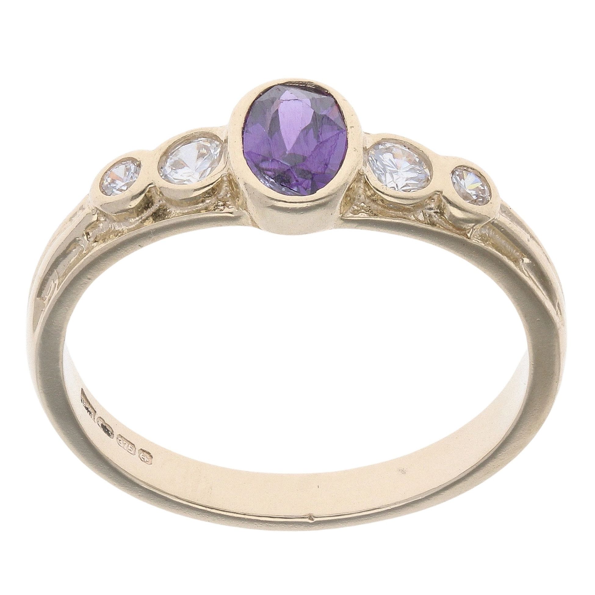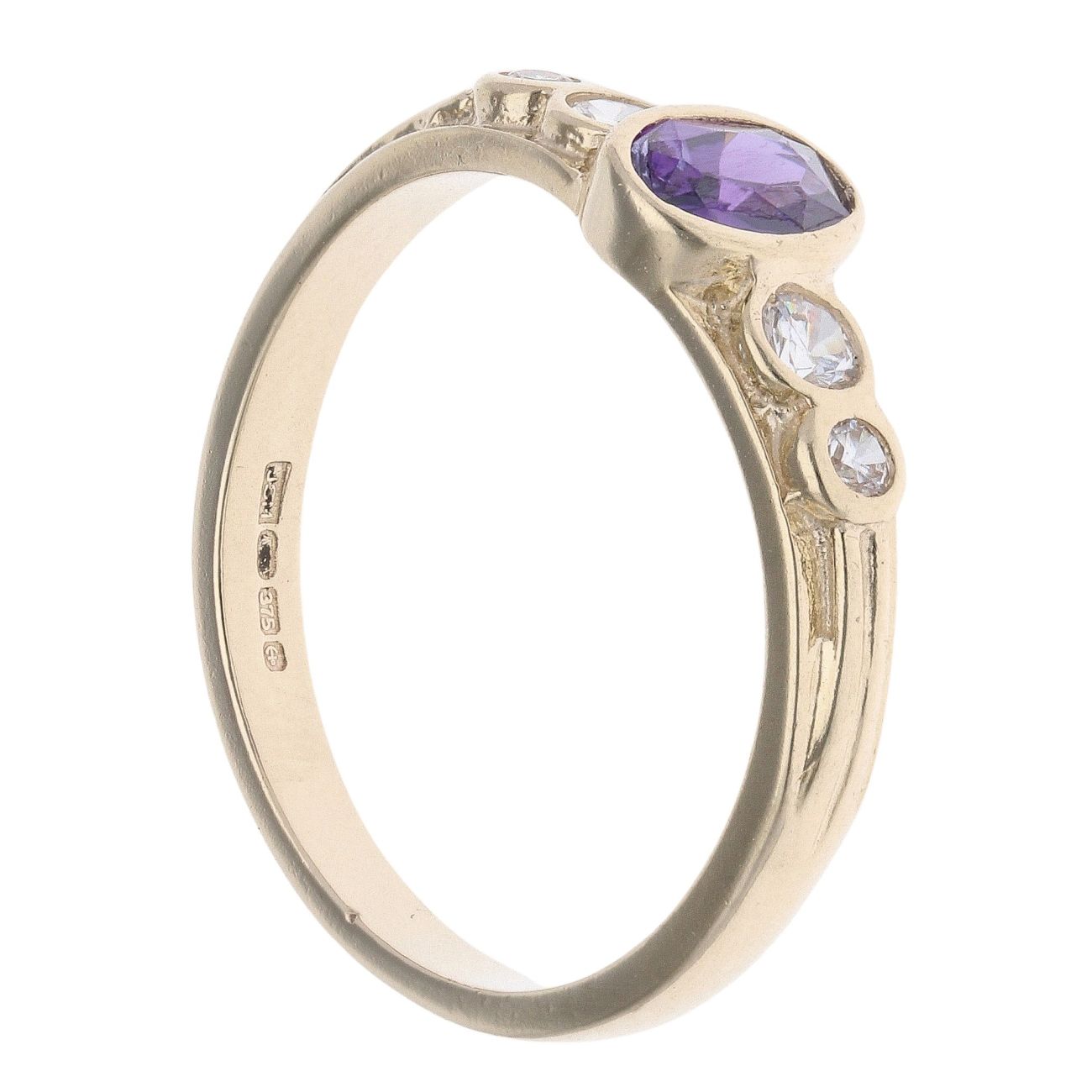 9ct Yellow Gold Amethyst And Cubic Zirconia Ring