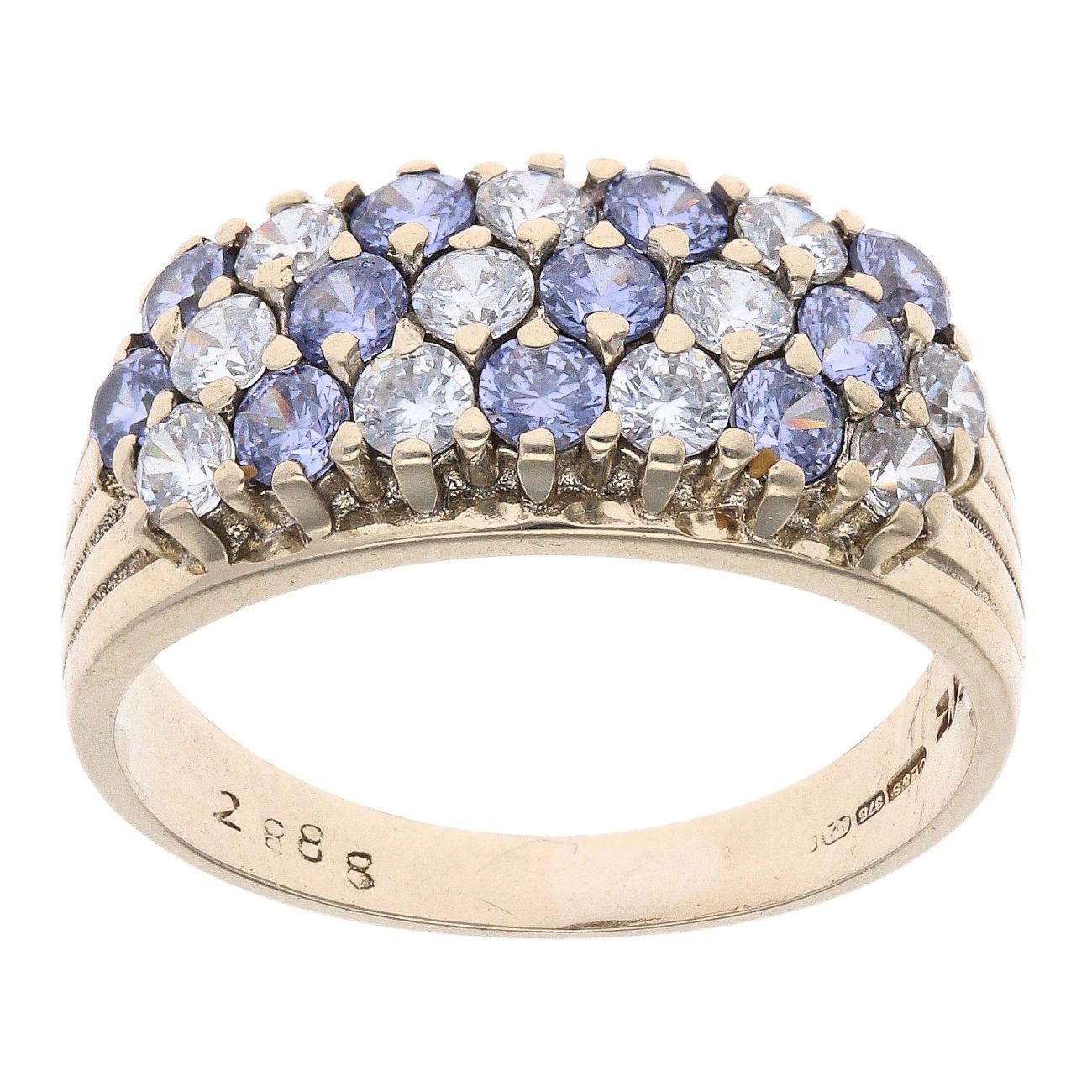 9ct Yellow Gold Amethyst And Cubic Zirconia Three Row Ring