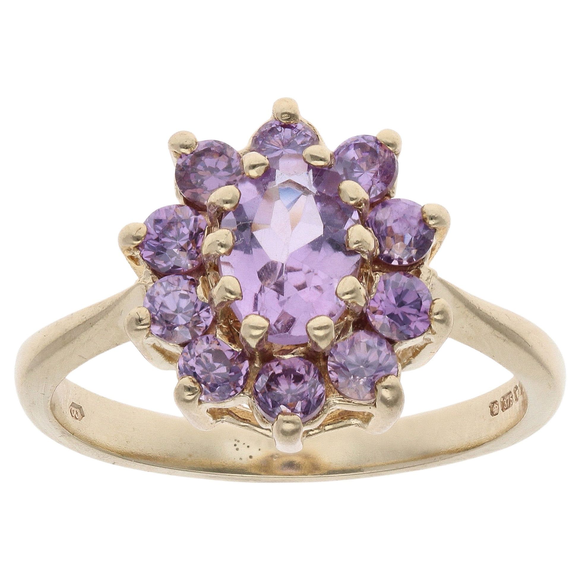 9ct Yellow Gold Amethyst Cluster Ring