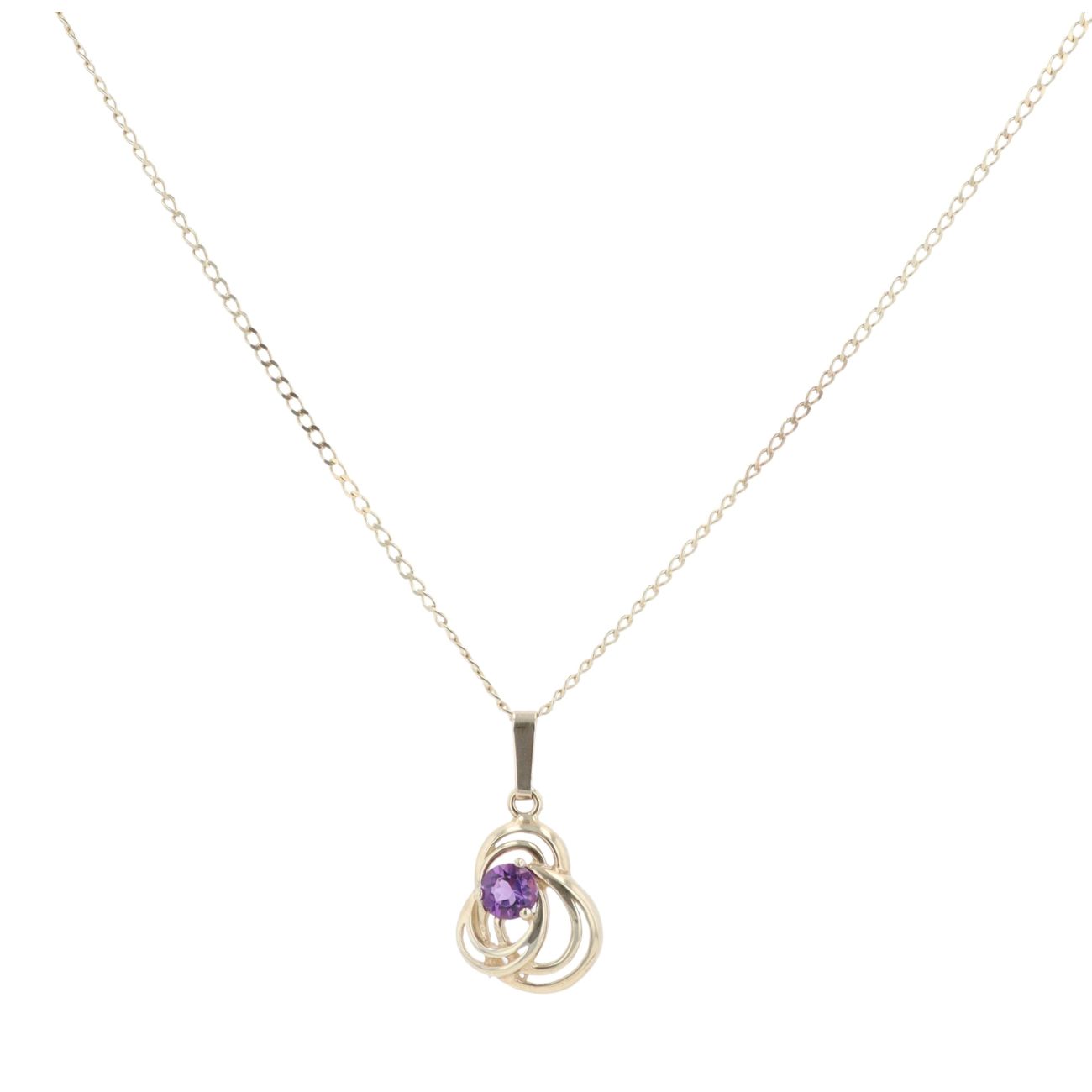 9ct Yellow Gold Amethyst Knot Pendant and Chain 18"