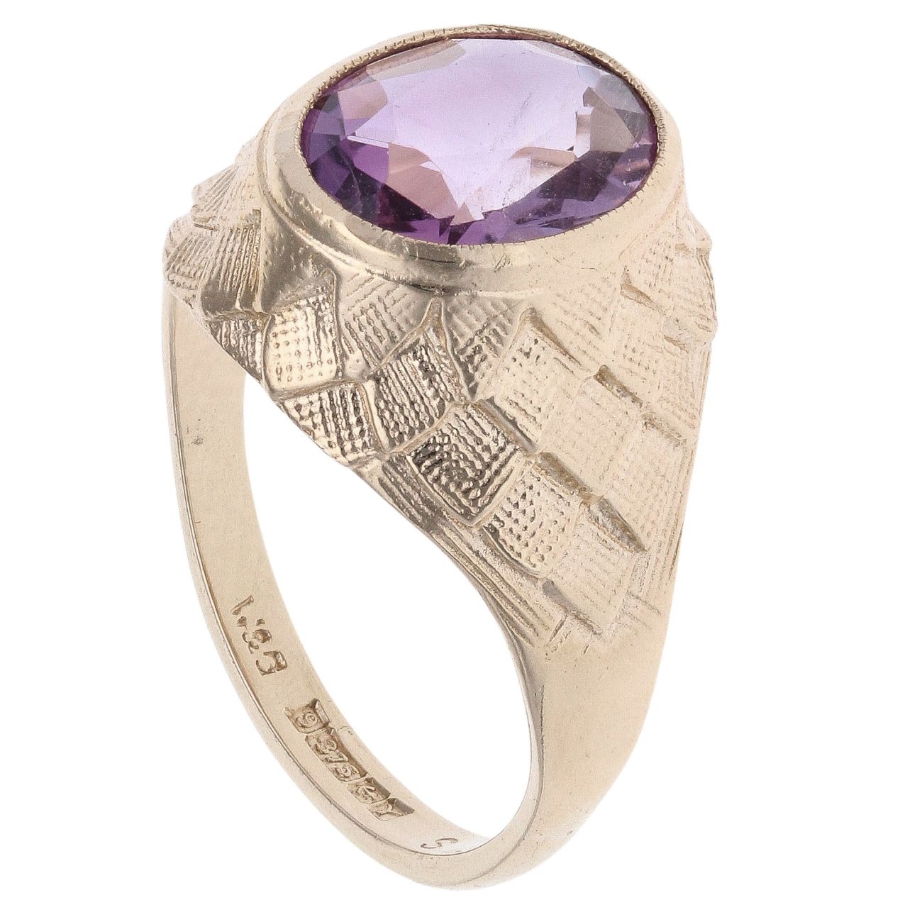 9ct Yellow Gold Amethyst Patterned Shoulders Ring