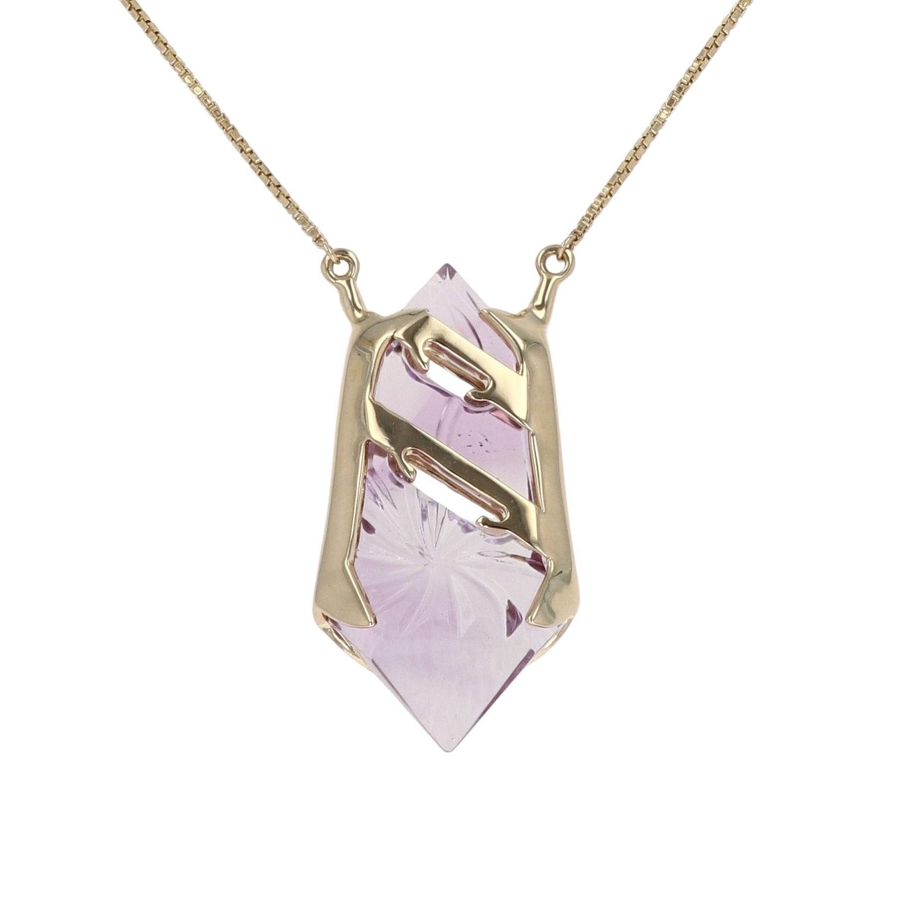 9ct Yellow Gold Amethyst Pendant And Chain 16"