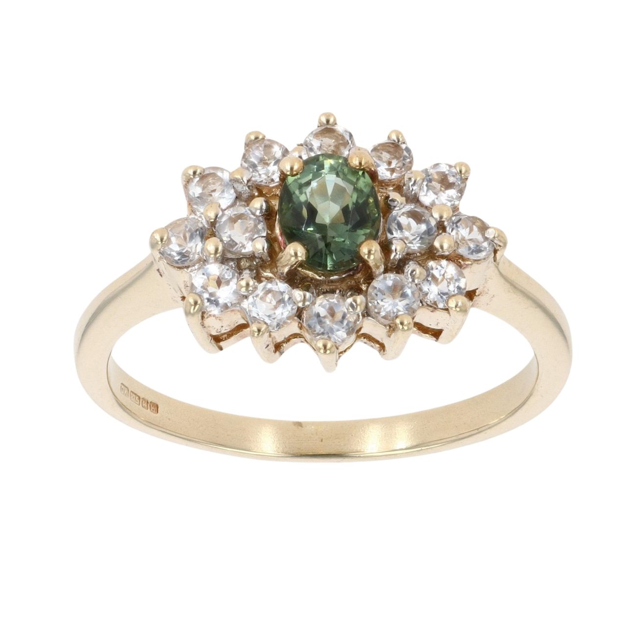 9ct Yellow Gold Andalusite And Cubic Zirconia Cluster Ring